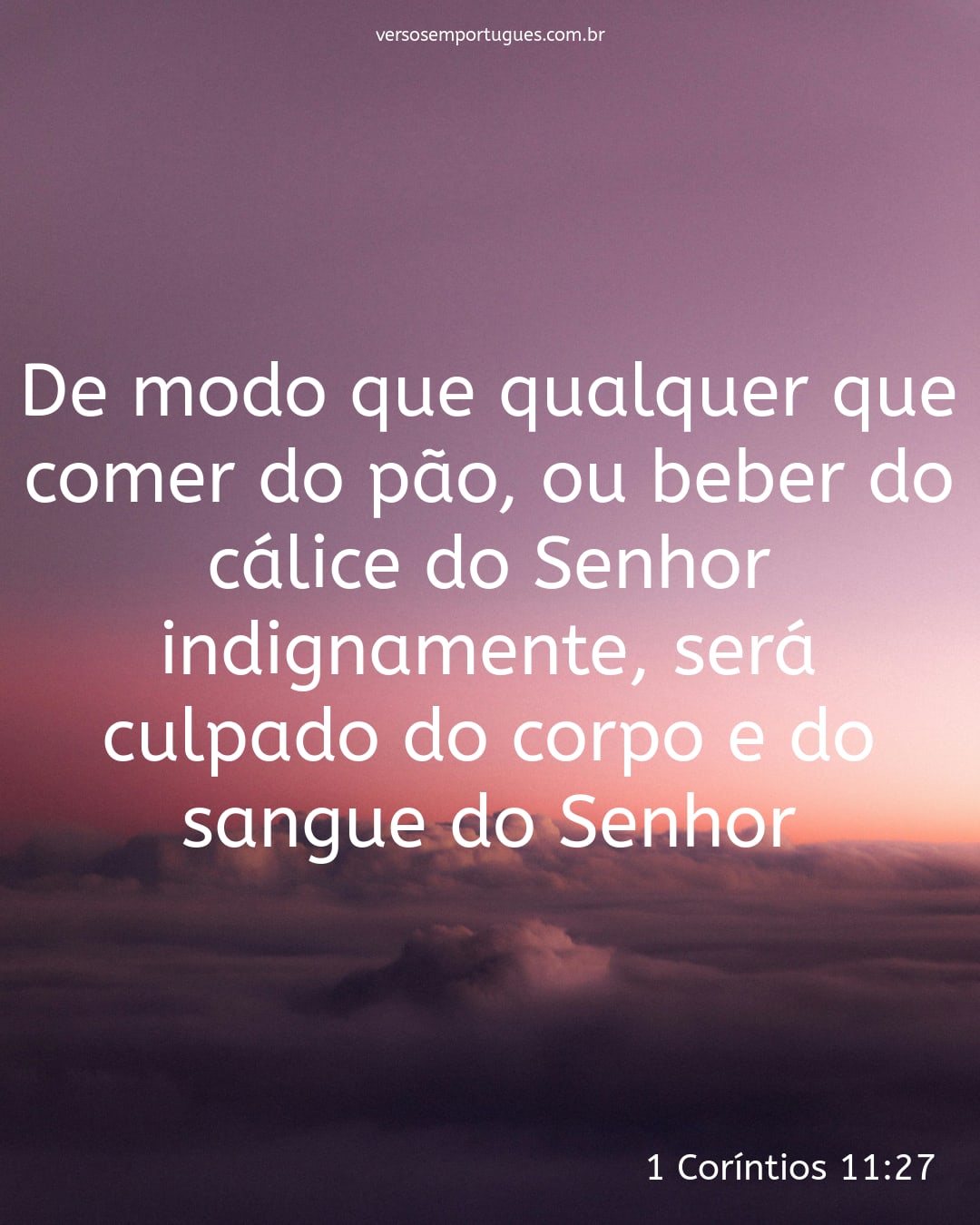 De modo que qualquer que comer do pão, ou beber do cálice do Senhor indignamente, será culpado do corpo e do sangue do Senhor.