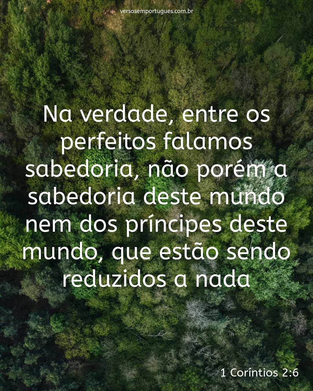 Na verdade, entre os perfeitos falamos sabedoria, não porém a sabedoria deste mundo, nem dos príncipes deste mundo, que estão sendo reduzidos a nada;