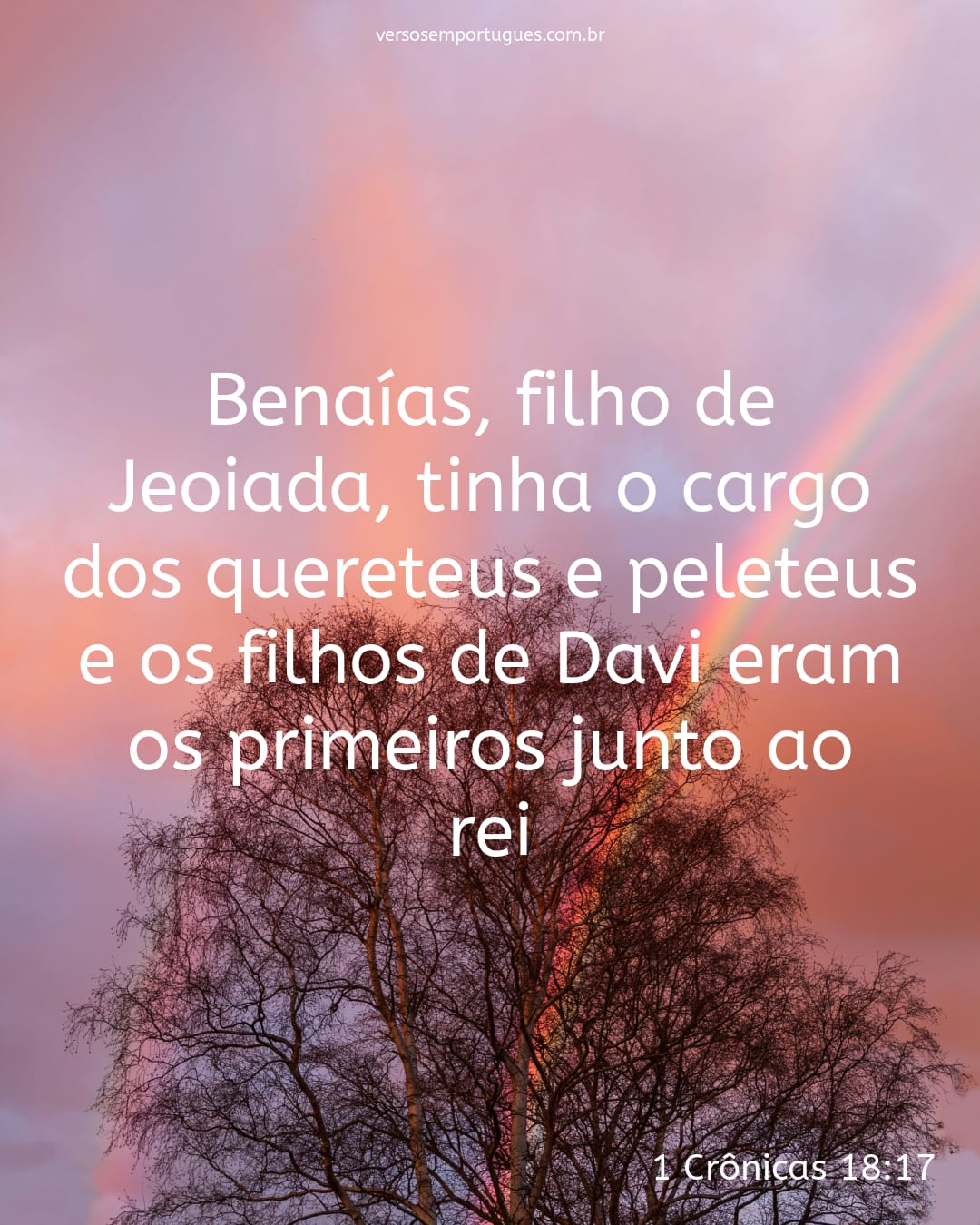 Benaías, filho de Jeoiada, tinha o cargo dos quereteus e peleteus; e os filhos de Davi eram os primeiros junto ao rei.