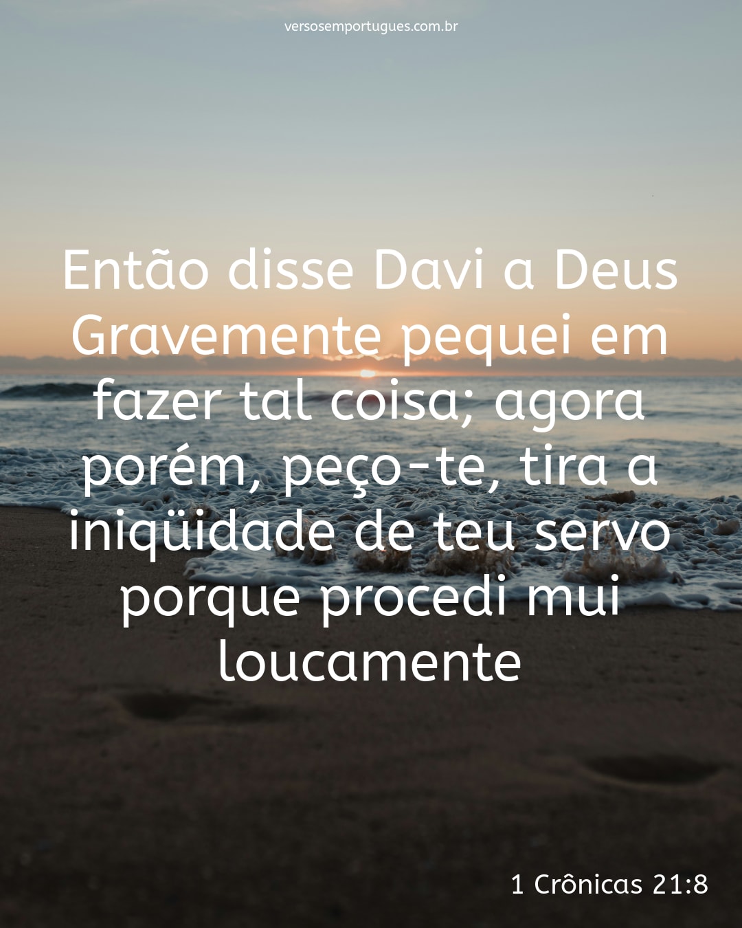 Então disse Davi a Deus: Gravemente pequei em fazer tal coisa; agora porém, peço-te, tira a iniqüidade de teu servo, porque procedi mui loucamente.