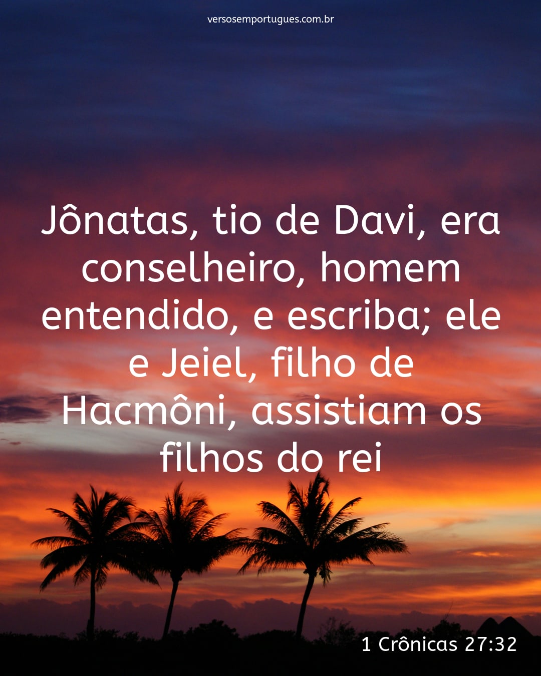 Jônatas, tio de Davi, era conselheiro, homem entendido, e escriba; ele e Jeiel, filho de Hacmôni, assistiam os filhos do rei;