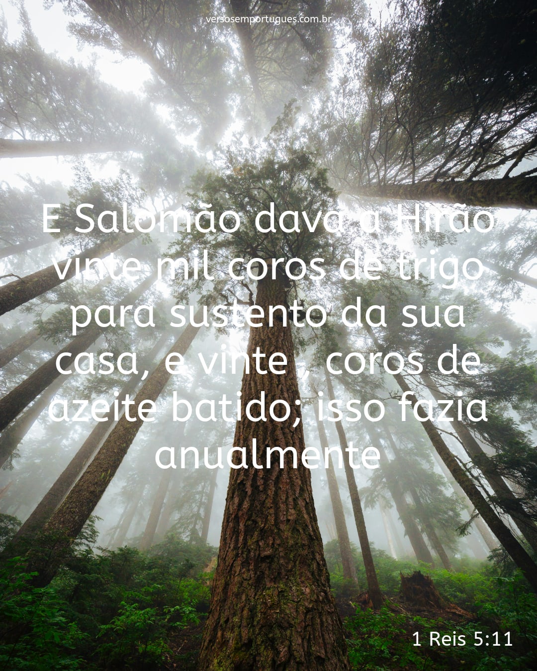 E Salomão dava a Hirão vinte mil coros de trigo, para sustento da sua casa, e vinte , coros de azeite batido; isso fazia anualmente.