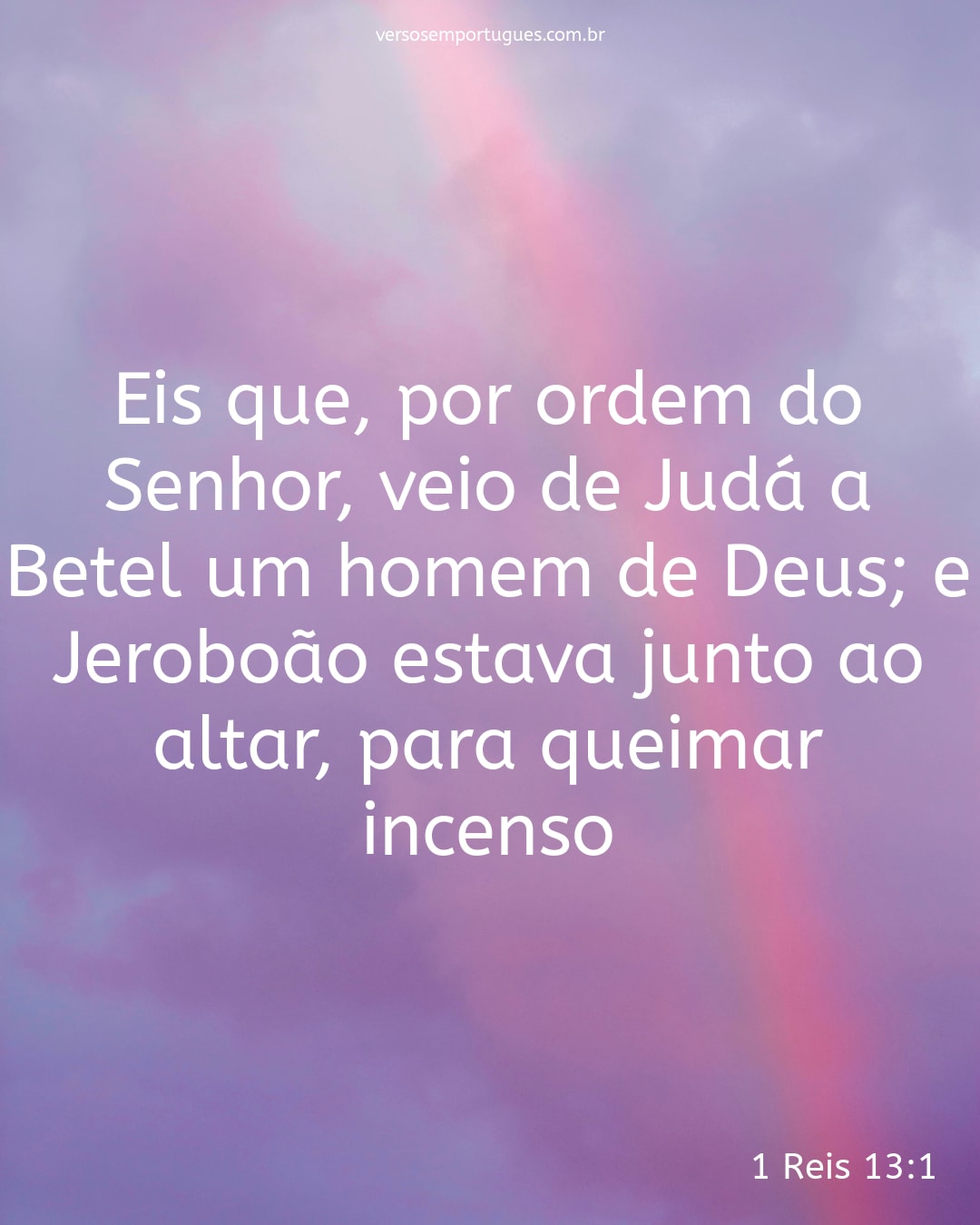 Eis que, por ordem do Senhor, veio de Judá a Betel um homem de Deus; e Jeroboão estava junto ao altar, para queimar incenso.
