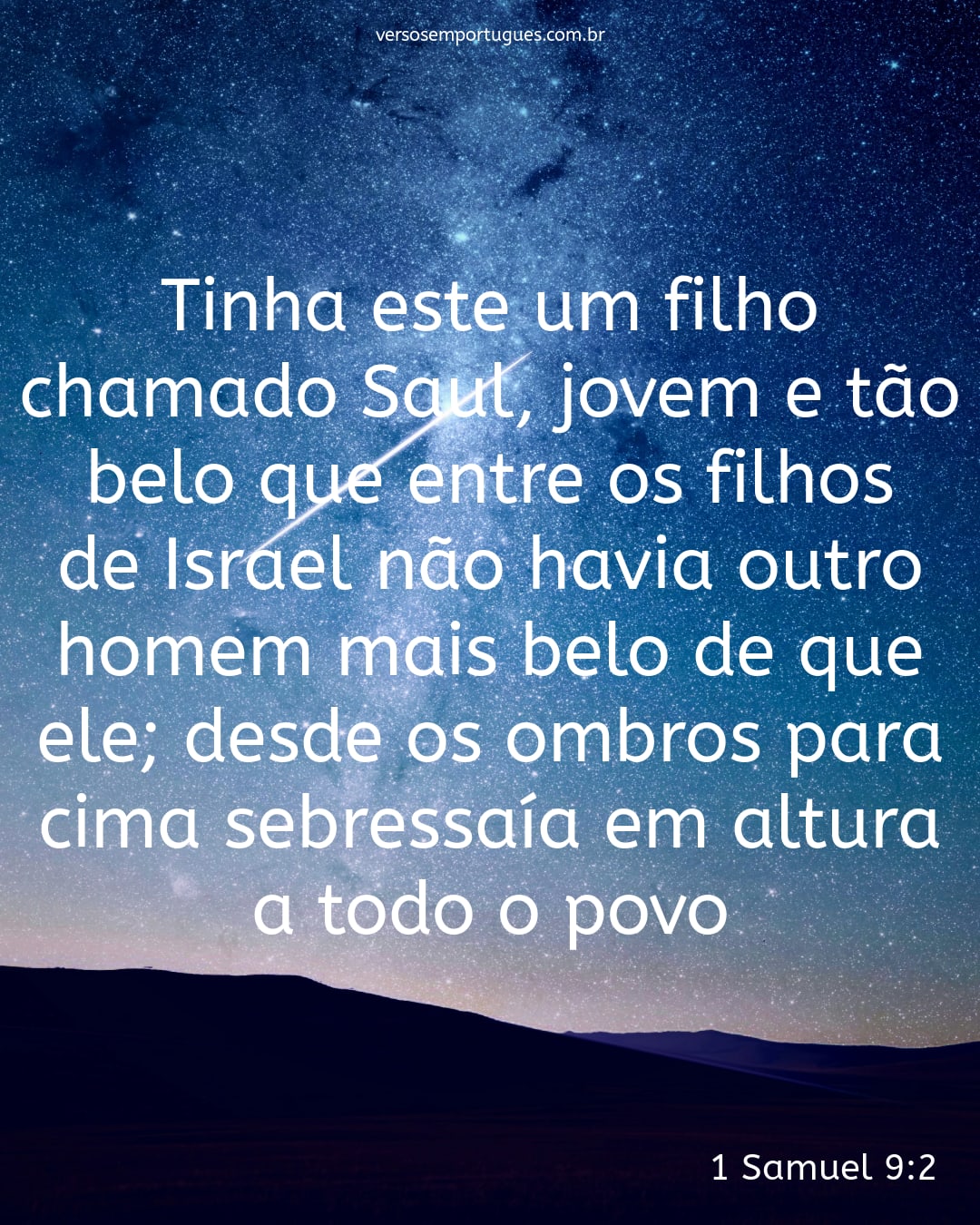 Tinha este um filho, chamado Saul, jovem e tão belo que entre os filhos de Israel não havia outro homem mais belo de que ele; desde os ombros para cima sebressaía em altura a todo o povo.