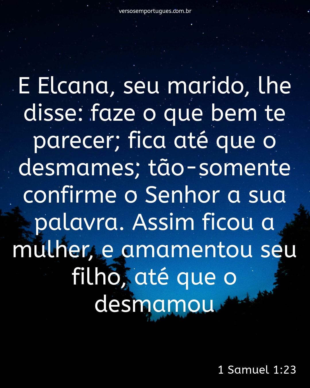 E Elcana, seu marido, lhe disse: faze o que bem te parecer; fica até que o desmames; tão-somente confirme o Senhor a sua palavra. Assim ficou a mulher, e amamentou seu filho, até que o desmamou.