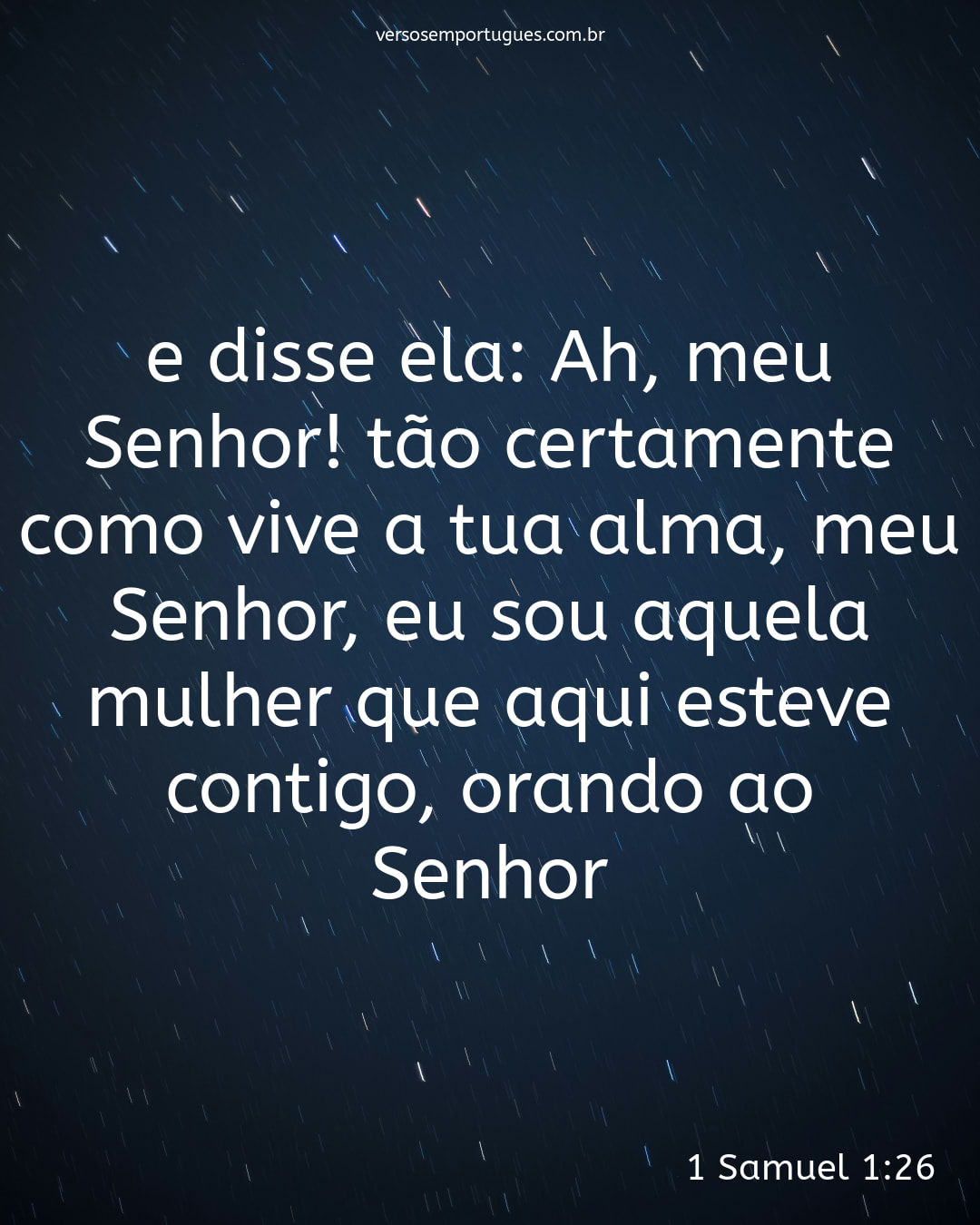 e disse ela: Ah, meu Senhor! tão certamente como vive a tua alma, meu Senhor, eu sou aquela mulher que aqui esteve contigo, orando ao Senhor.
