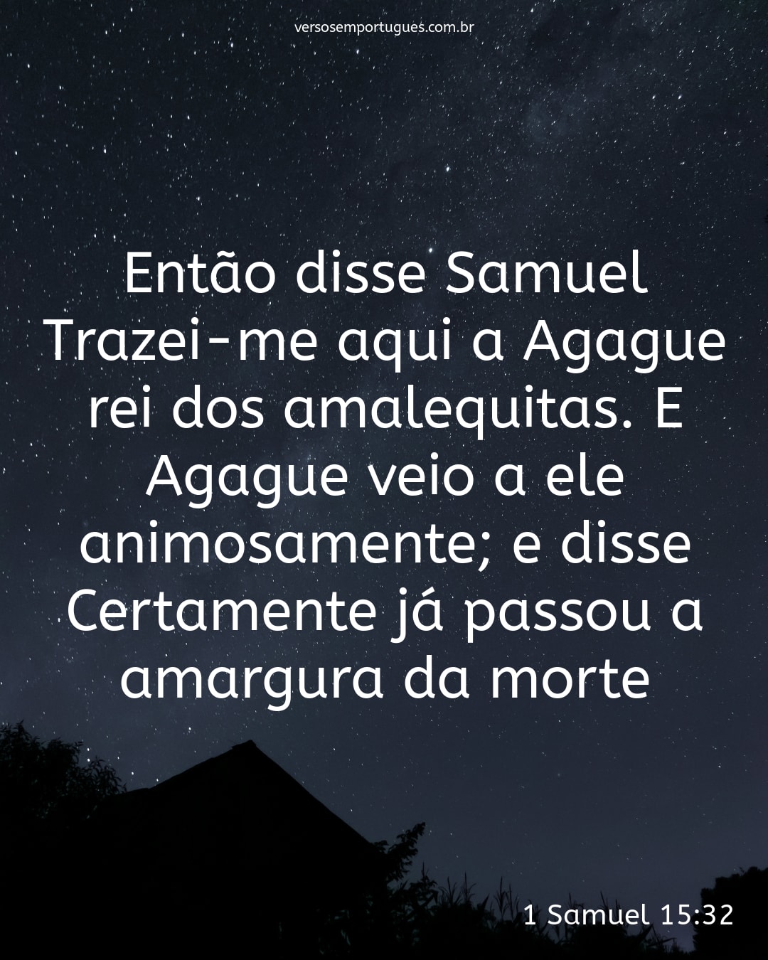 Então disse Samuel: Trazei-me aqui a Agague, rei dos amalequitas. E Agague veio a ele animosamente; e disse: Certamente já passou a amargura da morte.