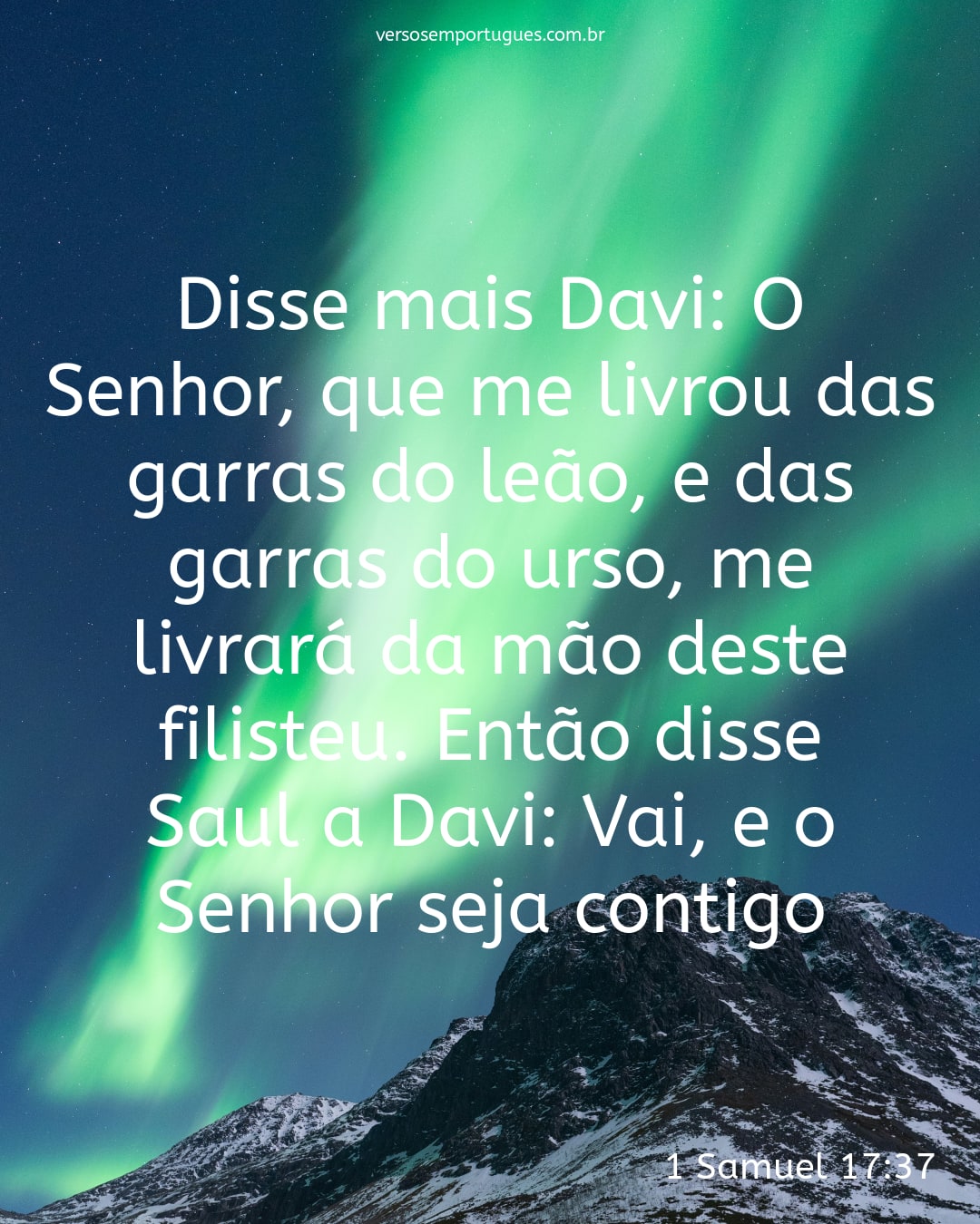 Disse mais Davi: O Senhor, que me livrou das garras do leão, e das garras do urso, me livrará da mão deste filisteu. Então disse Saul a Davi: Vai, e o Senhor seja contigo.