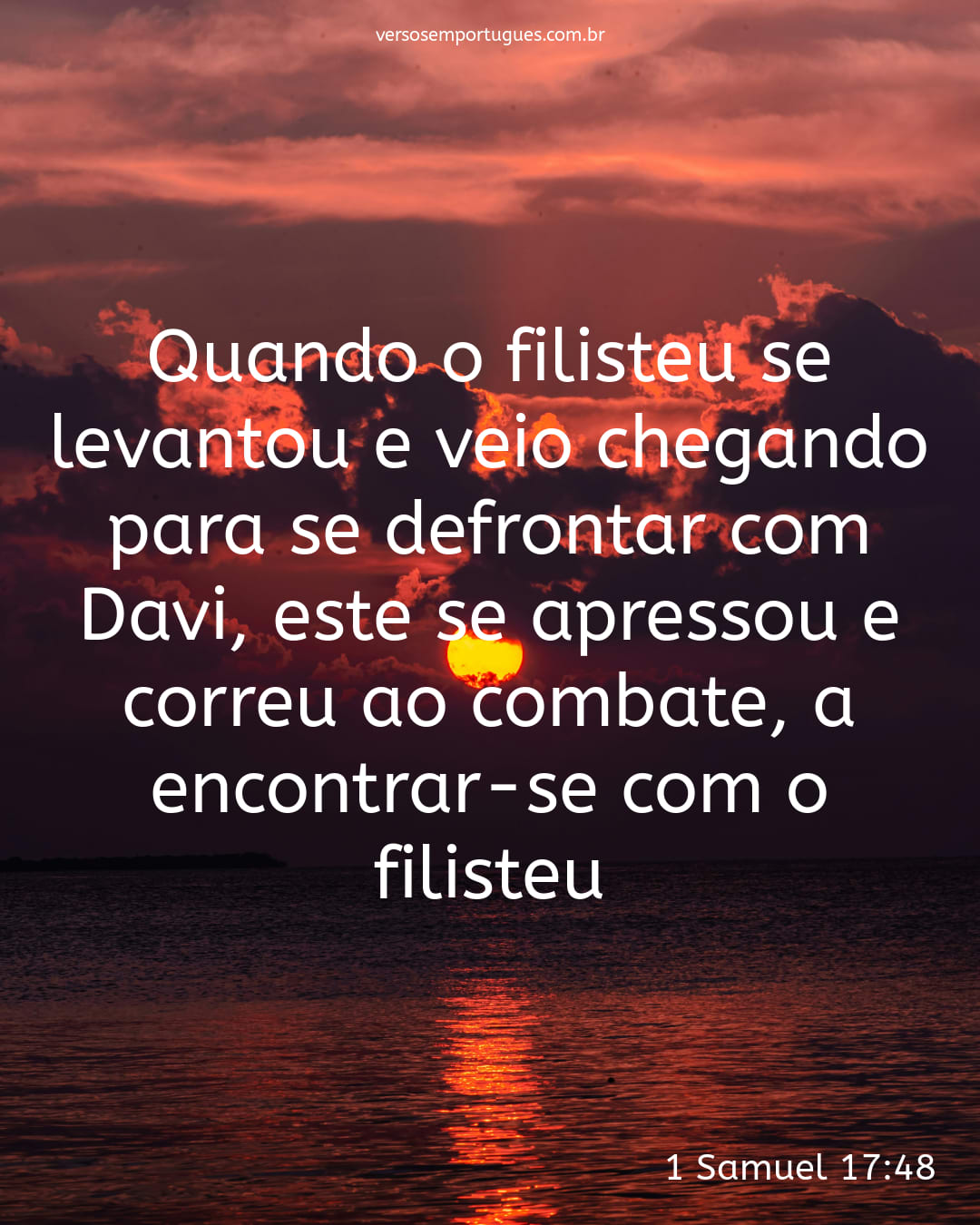 Quando o filisteu se levantou e veio chegando para se defrontar com Davi, este se apressou e correu ao combate, a encontrar-se com o filisteu.