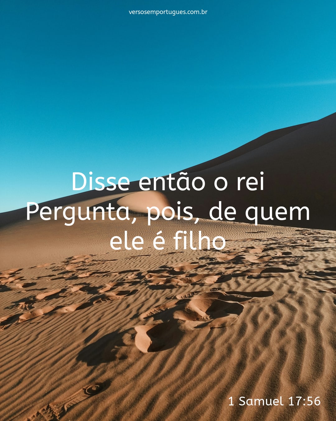 Quando Saul viu Davi sair e encontrar-se com o filisteu, perguntou a Abner, o chefe do exército: De quem é filho esse jovem, Abner? Respondeu Abner: Vive a tua alma, ó rei, que não sei.