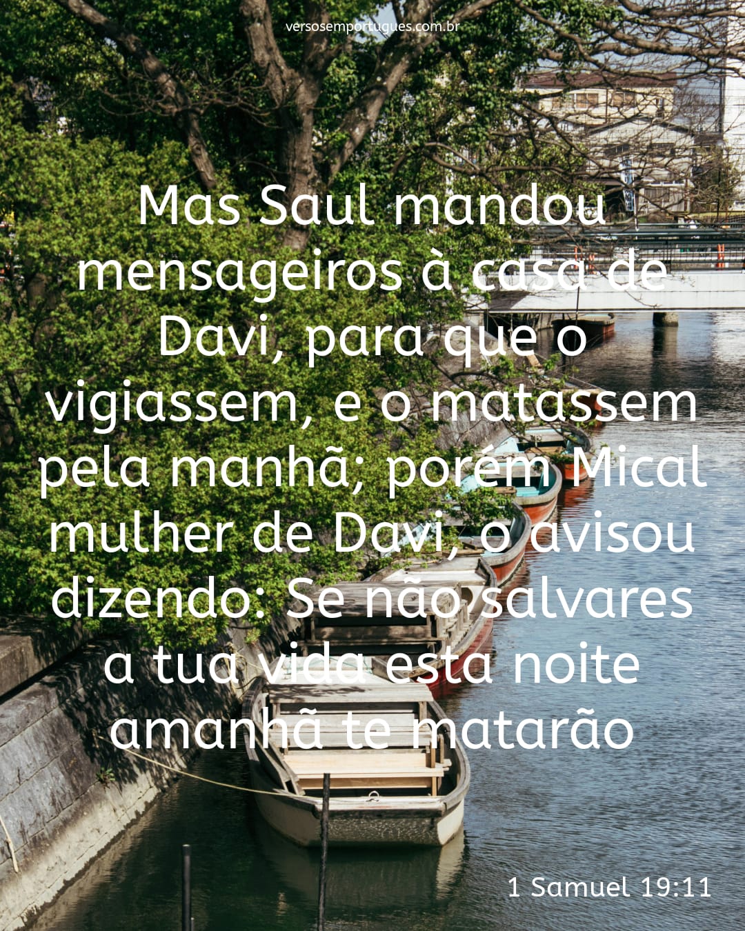 Mas Saul mandou mensageiros à casa de Davi, para que o vigiassem, e o matassem pela manhã; porém Mical, mulher de Davi, o avisou, dizendo: Se não salvares a tua vida esta noite, amanhã te matarão.