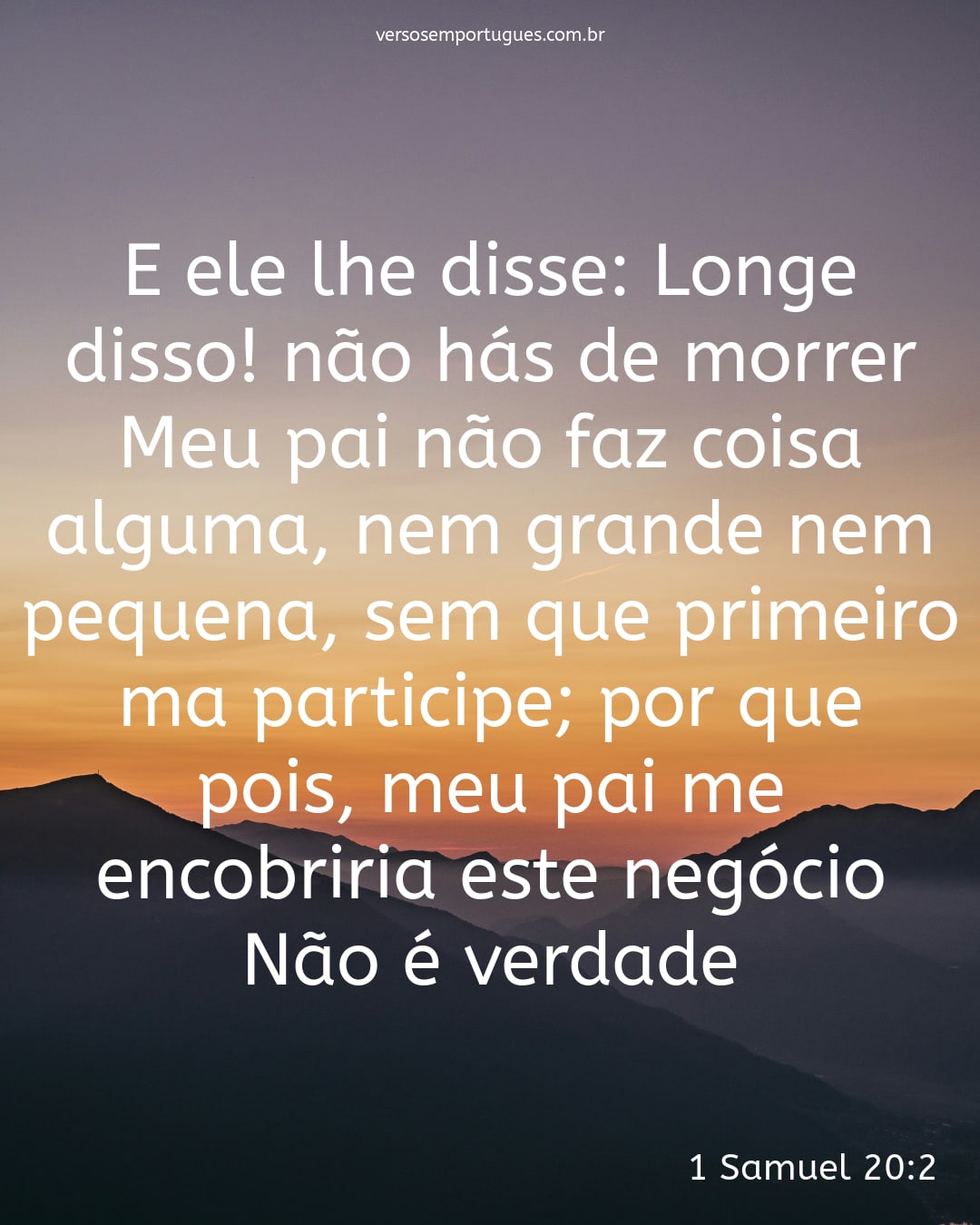 E ele lhe disse: Longe disso! não hás de morrer. Meu pai não faz coisa alguma, nem grande nem pequena, sem que primeiro ma participe; por que, pois, meu pai me encobriria este negócio? Não é verdade.