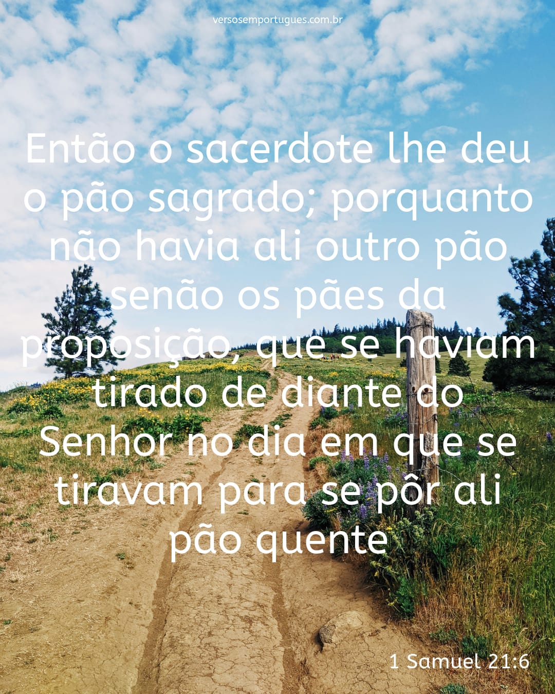 Então o sacerdote lhe deu o pão sagrado; porquanto não havia ali outro pão senão os pães da proposição, que se haviam tirado de diante do Senhor no dia em que se tiravam para se pôr ali pão quente.