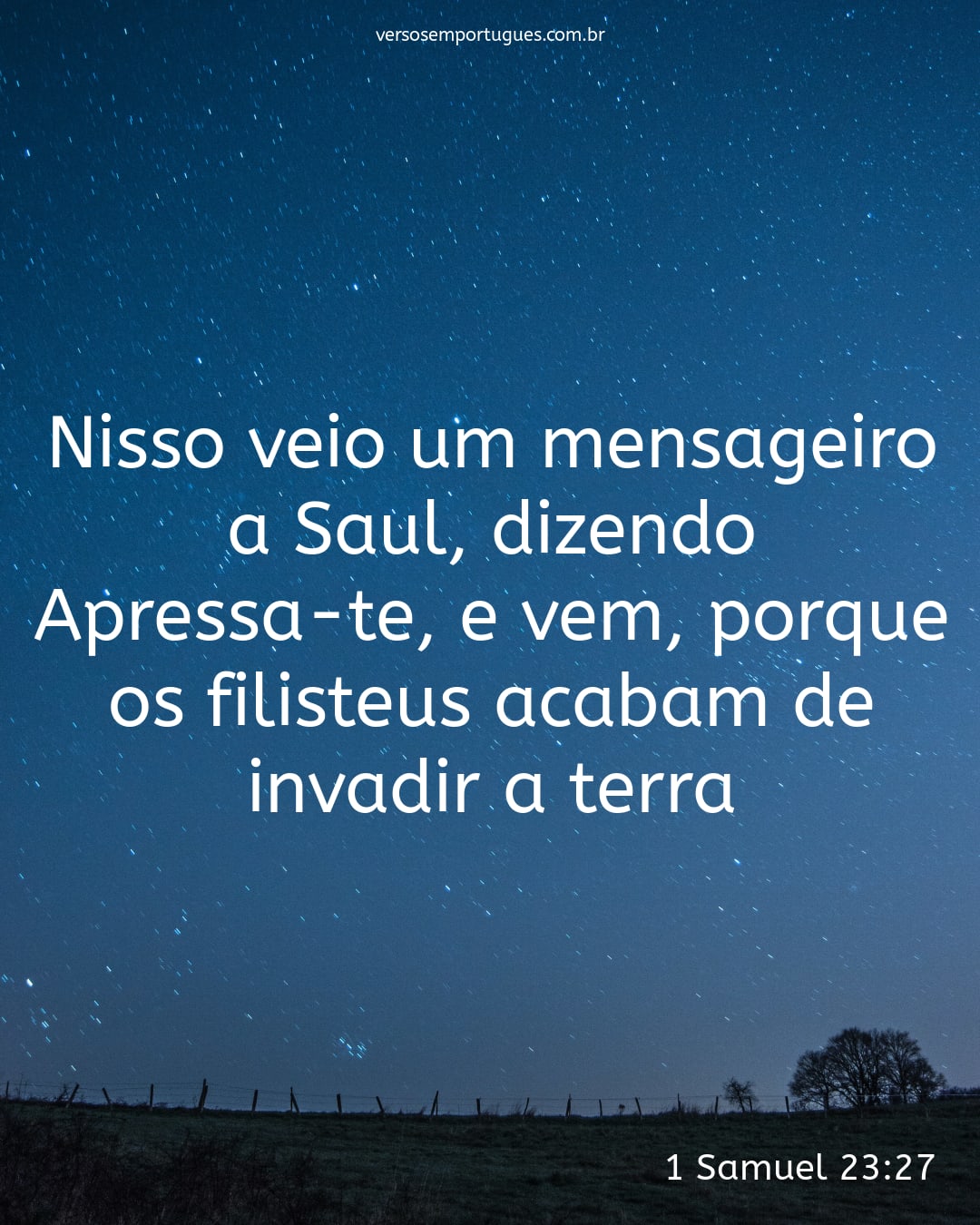 Nisso veio um mensageiro a Saul, dizendo: Apressa-te, e vem, porque os filisteus acabam de invadir a terra.