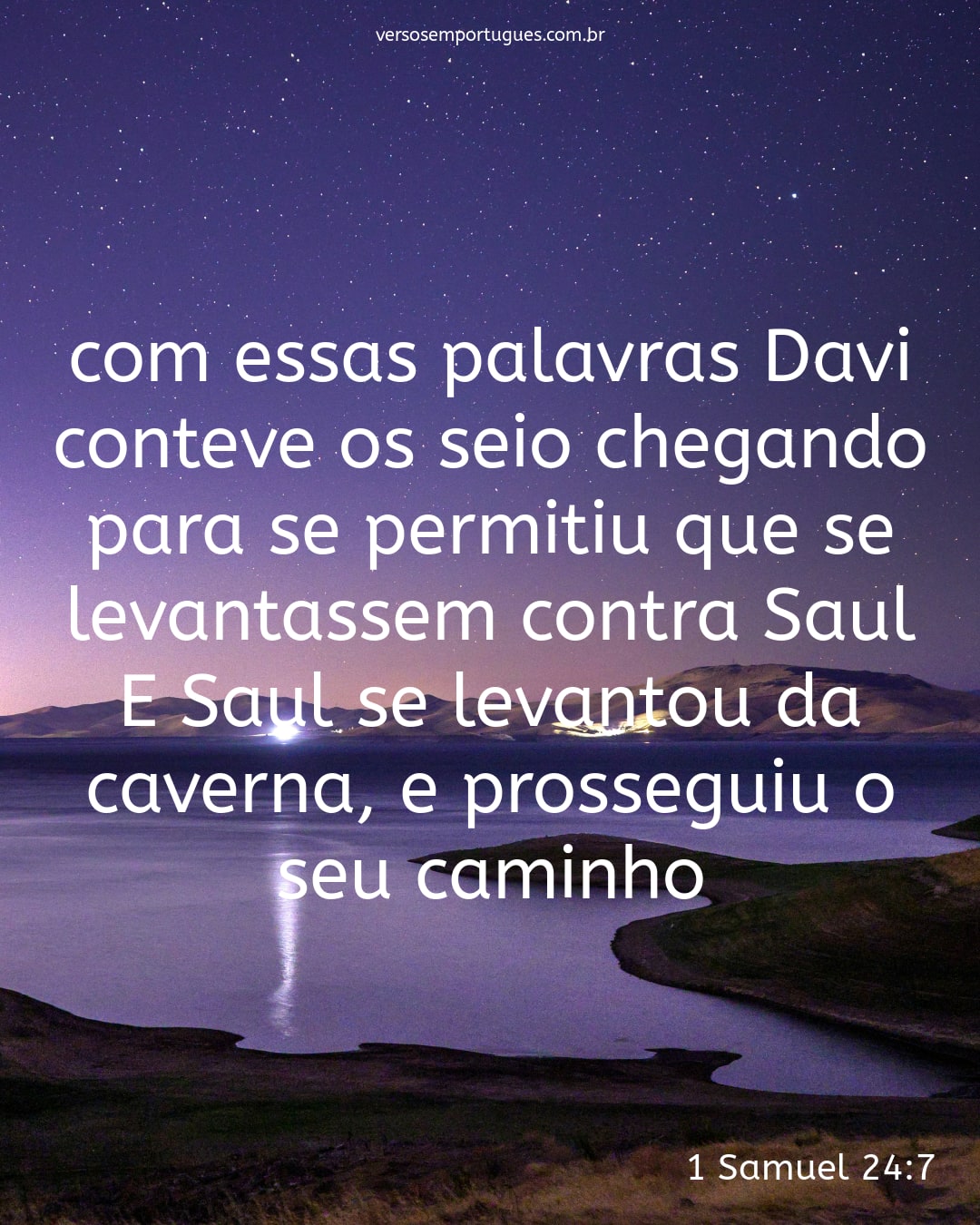 Depois também Davi se levantou e, saindo da caverna, gritou por detrás de Saul, dizendo: ç rei, meu senhor! Quando Saul olhou para trás, Davi se inclinou com o rosto em terra e lhe fez reverência.