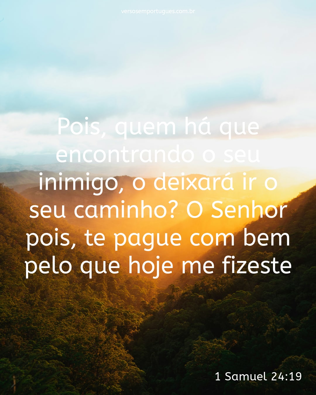 Pois, quem há que, encontrando o seu inimigo, o deixará ir o seu caminho? O Senhor, pois, te pague com bem, pelo que hoje me fizeste.