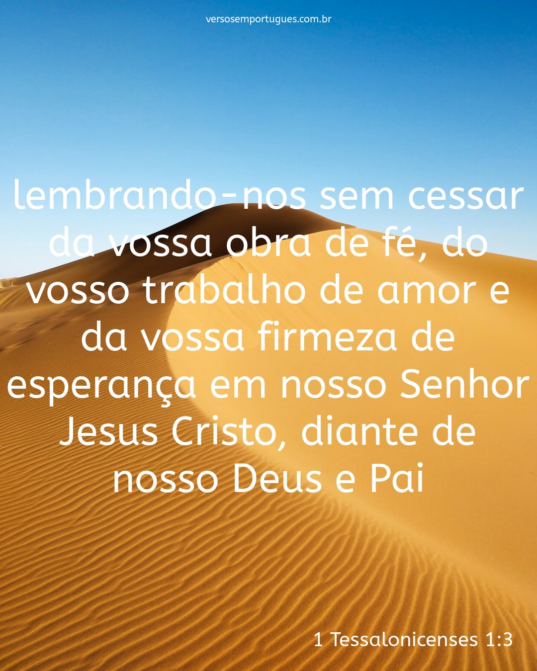 lembrando-nos sem cessar da vossa obra de fé, do vosso trabalho de amor e da vossa firmeza de esperança em nosso Senhor Jesus Cristo, diante de nosso Deus e Pai,
