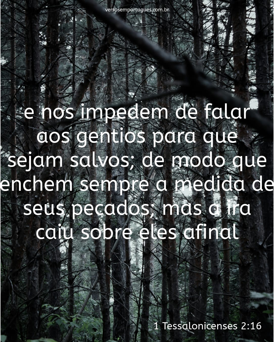 e nos impedem de falar aos gentios para que sejam salvos; de modo que enchem sempre a medida de seus pecados; mas a ira caiu sobre eles afinal.