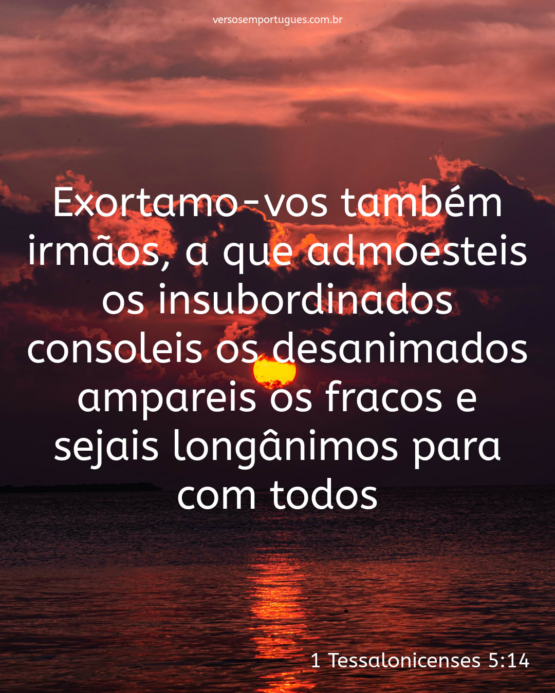 Exortamo-vos também, irmãos, a que admoesteis os insubordinados, consoleis os desanimados, ampareis os fracos e sejais longânimos para com todos.