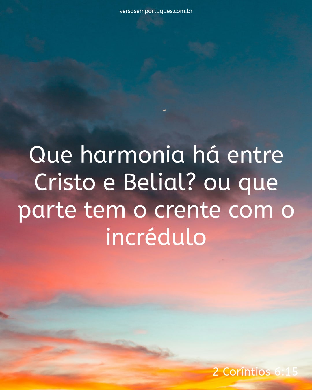 Não vos prendais a um jugo desigual com os incrédulos; pois que sociedade tem a justiça com a injustiça? ou que comunhão tem a luz com as trevas?