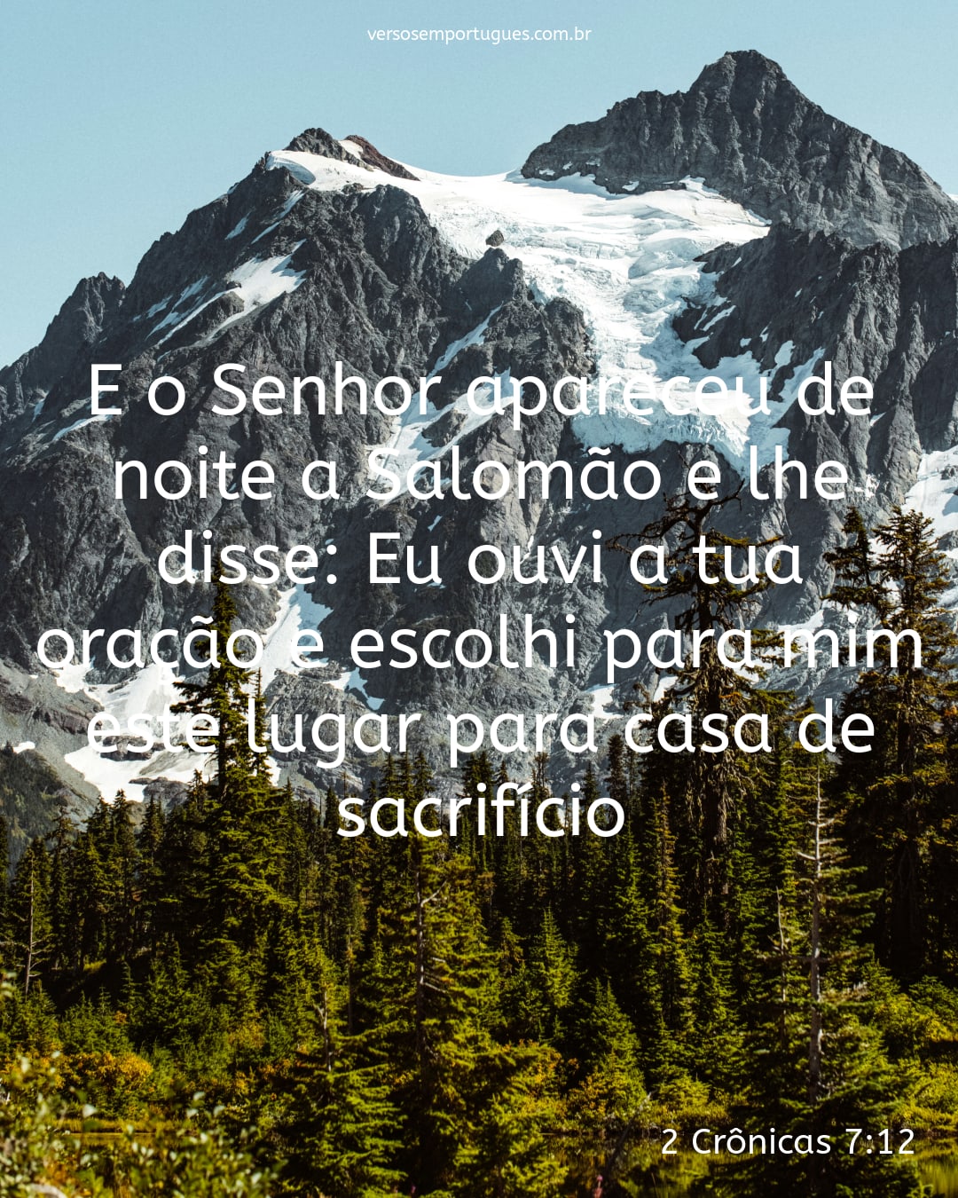 E o Senhor apareceu de noite a Salomão e lhe disse: Eu ouvi a tua oração e escolhi para mim este lugar para casa de sacrifício.
