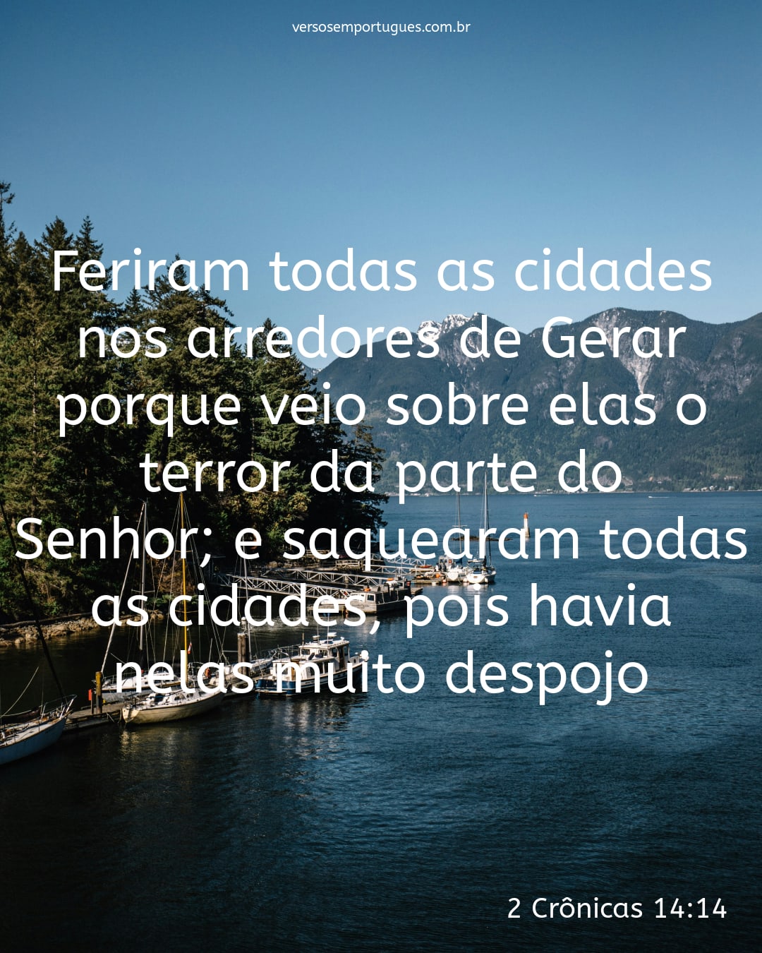 Feriram todas as cidades nos arredores de Gerar, porque veio sobre elas o terror da parte do Senhor; e saquearam todas as cidades, pois havia nelas muito despojo.
