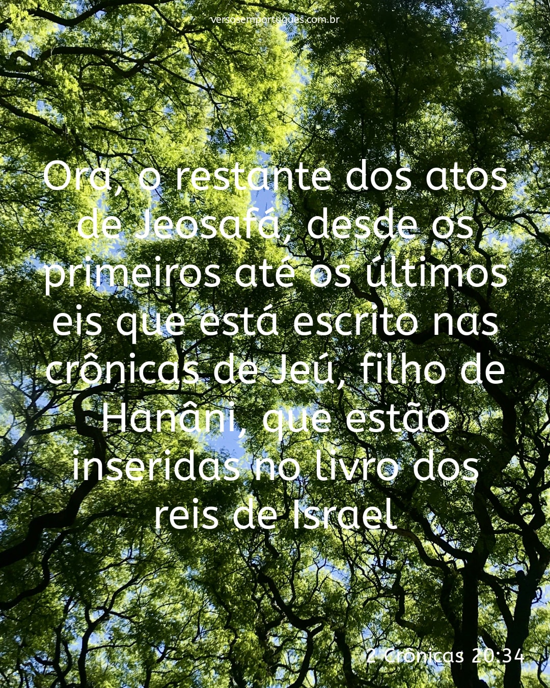 Ora, o restante dos atos de Jeosafá, desde os primeiros até os últimos, eis que está escrito nas crônicas de Jeú, filho de Hanâni, que estão inseridas no livro dos reis de Israel.