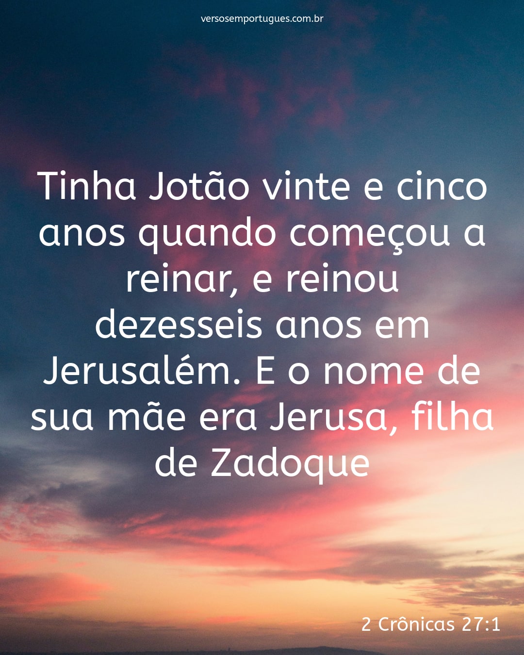 Tinha Jotão vinte e cinco anos quando começou a reinar, e reinou dezesseis anos em Jerusalém. E o nome de sua mãe era Jerusa, filha de Zadoque,