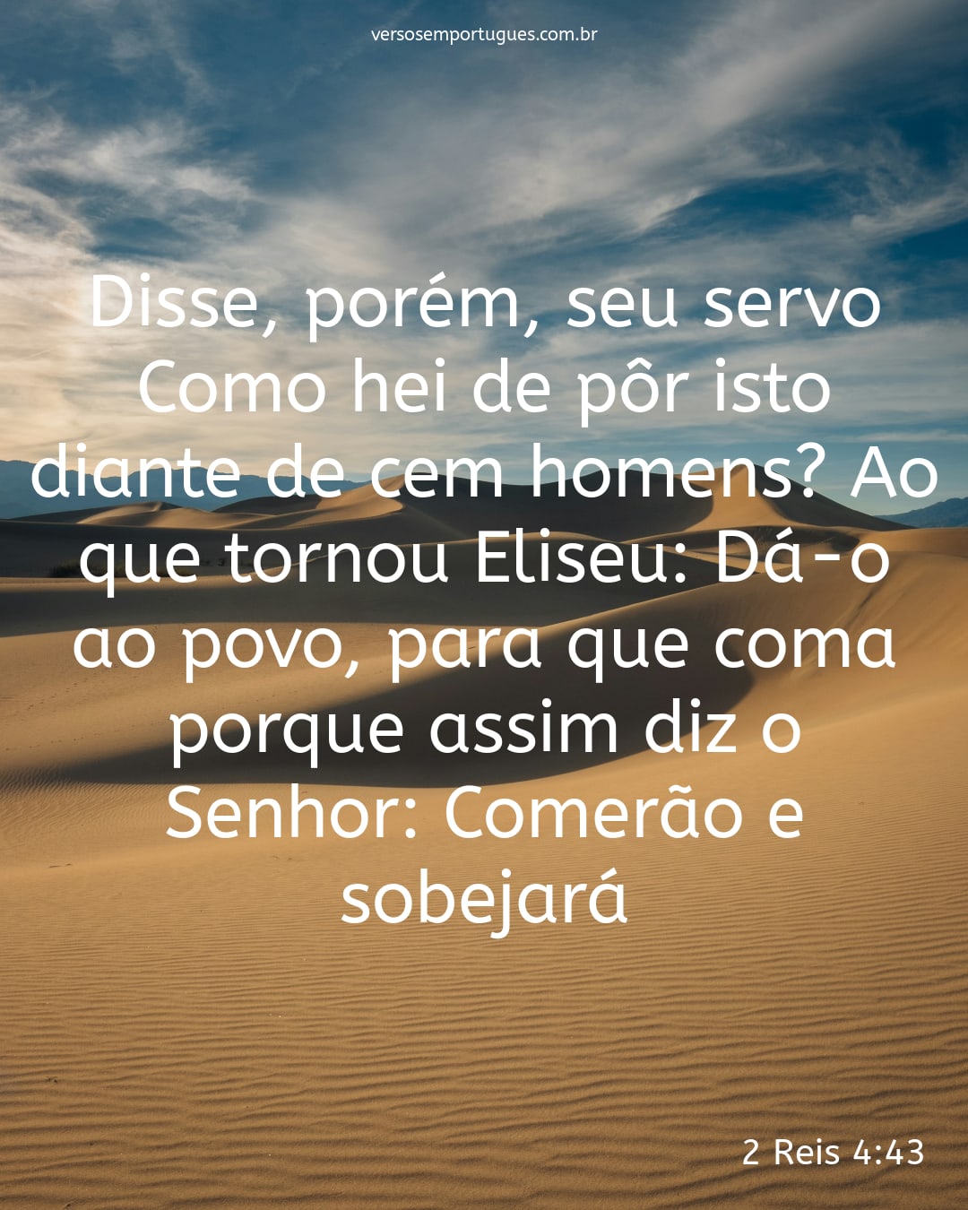 Disse, porém, seu servo: Como hei de pôr isto diante de cem homens? Ao que tornou Eliseu: Dá-o ao povo, para que coma; porque assim diz o Senhor: Comerão e sobejará.