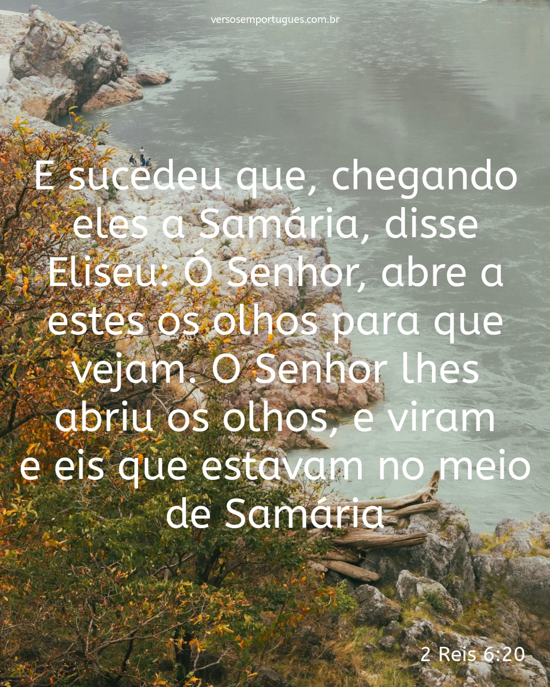 E sucedeu que, chegando eles a Samária, disse Eliseu: Ó Senhor, abre a estes os olhos para que vejam. O Senhor lhes abriu os olhos, e viram; e eis que estavam no meio de Samária.