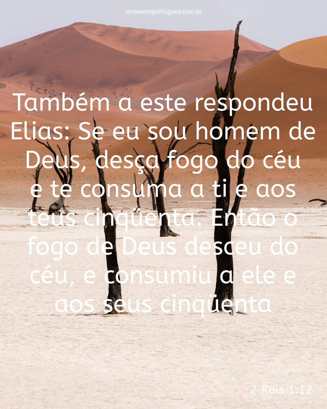 Também a este respondeu Elias: Se eu sou homem de Deus, desça fogo do céu, e te consuma a ti e aos teus cinqüenta. Então o fogo de Deus desceu do céu, e consumiu a ele e aos seus cinqüenta.