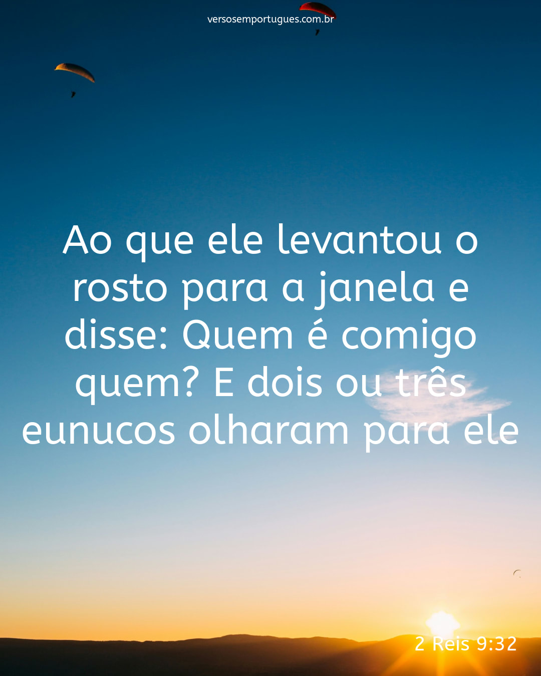 Ao que ele levantou o rosto para a janela e disse: Quem é comigo? quem? E dois ou três eunucos olharam para ele.