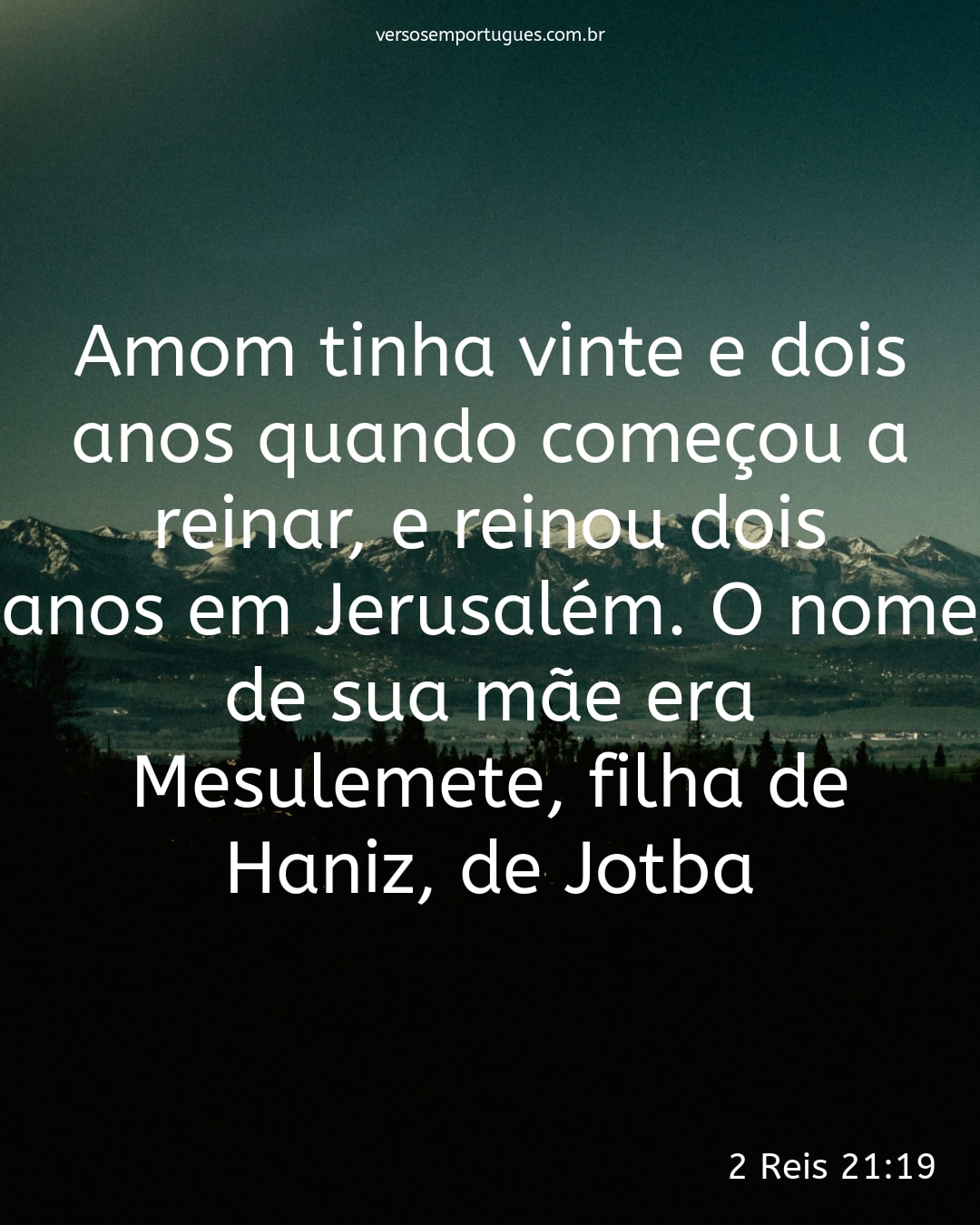 Amom tinha vinte e dois anos quando começou a reinar, e reinou dois anos em Jerusalém. O nome de sua mãe era Mesulemete, filha de Haniz, de Jotba.