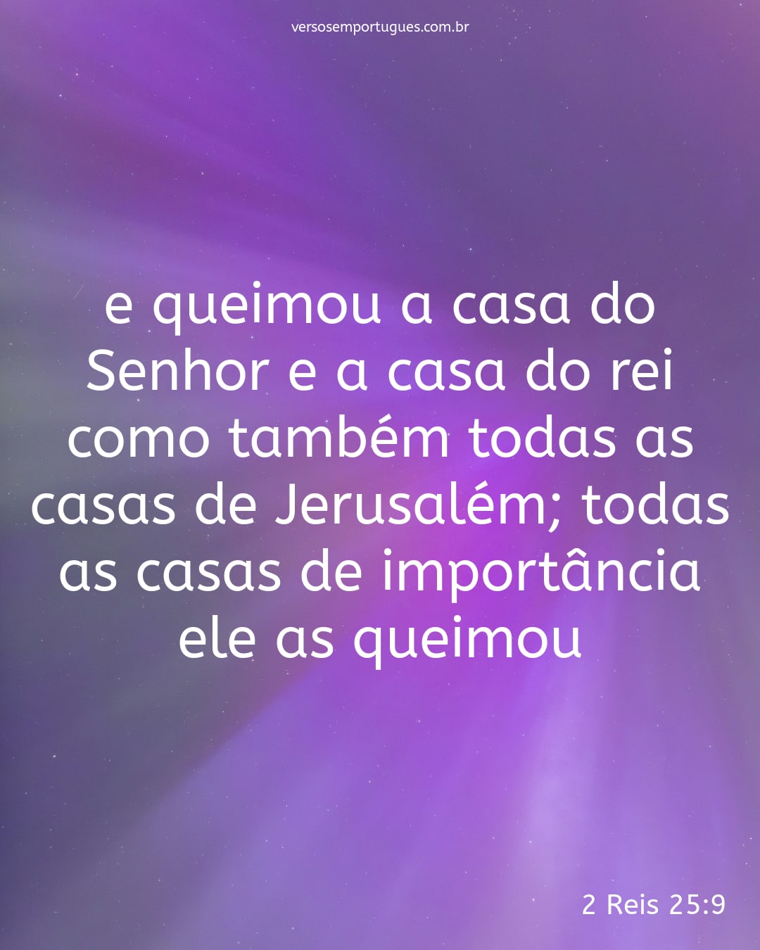 e queimou a casa do Senhor e a casa do rei, como também todas as casas de Jerusalém; todas as casas de importância, ele as queimou.
