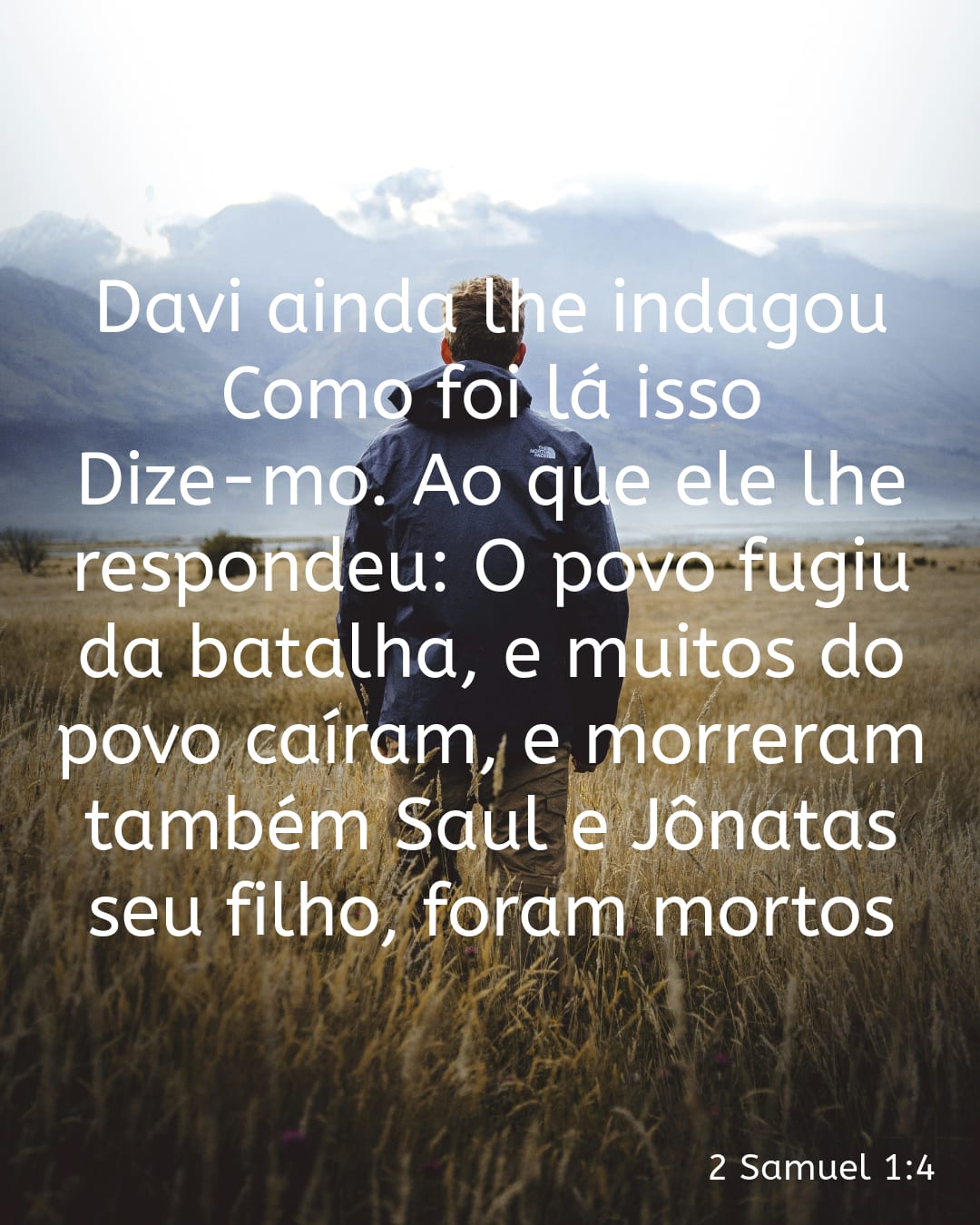 Davi ainda lhe indagou: Como foi lá isso? Dize-mo. Ao que ele lhe respondeu: O povo fugiu da batalha, e muitos do povo caíram, e morreram; também Saul e Jônatas, seu filho, foram mortos.