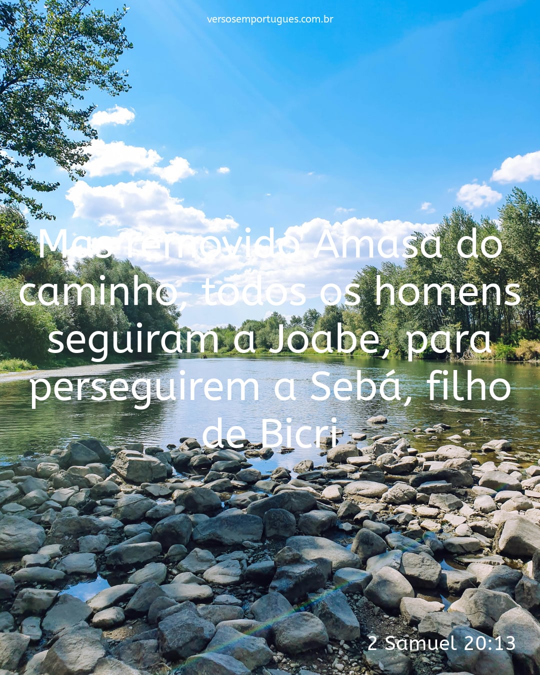 Mas removido Amasa do caminho, todos os homens seguiram a Joabe, para perseguirem a Sebá, filho de Bicri.