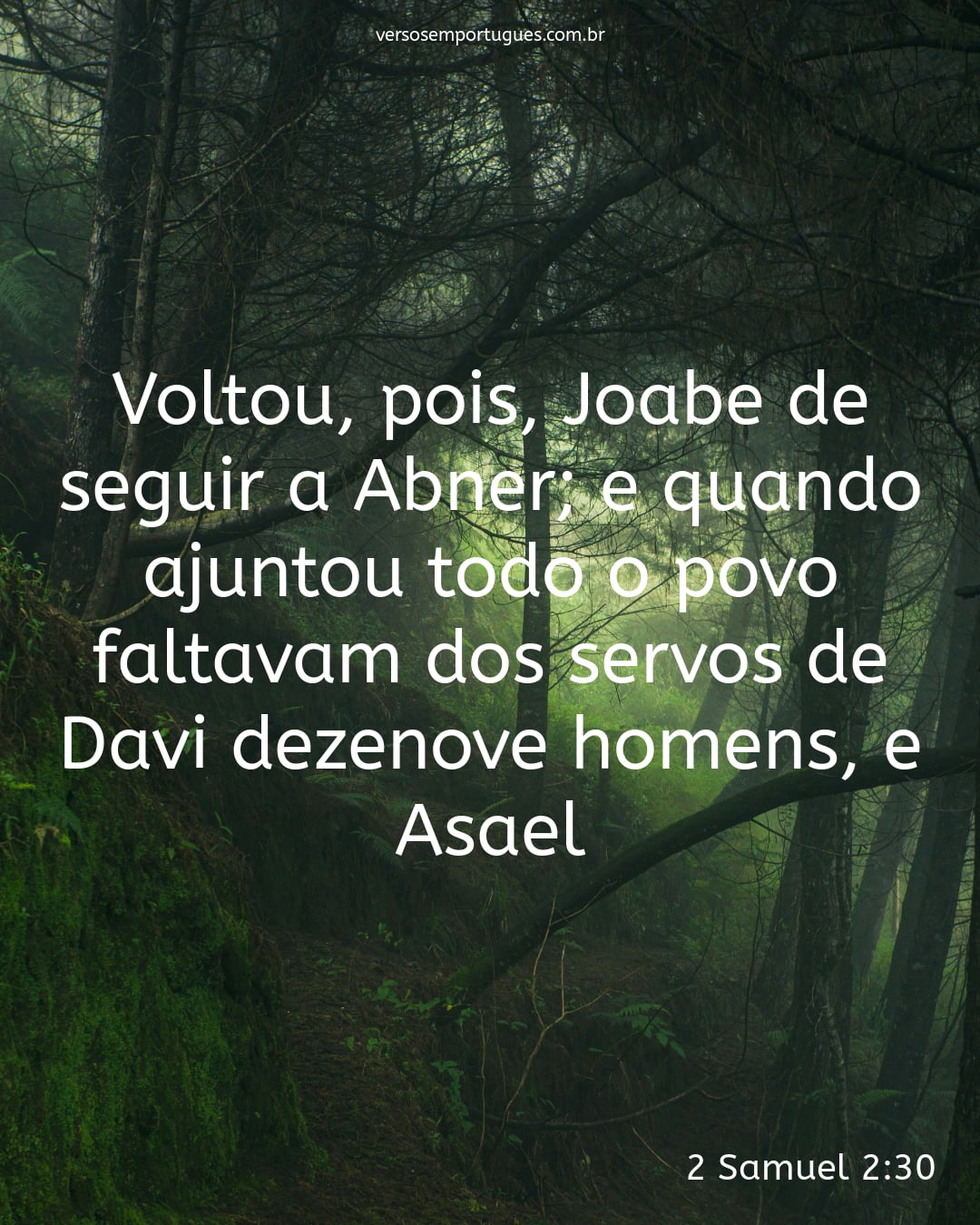 Voltou, pois, Joabe de seguir a Abner; e quando ajuntou todo o povo, faltavam dos servos de Davi dezenove homens, e Asael.