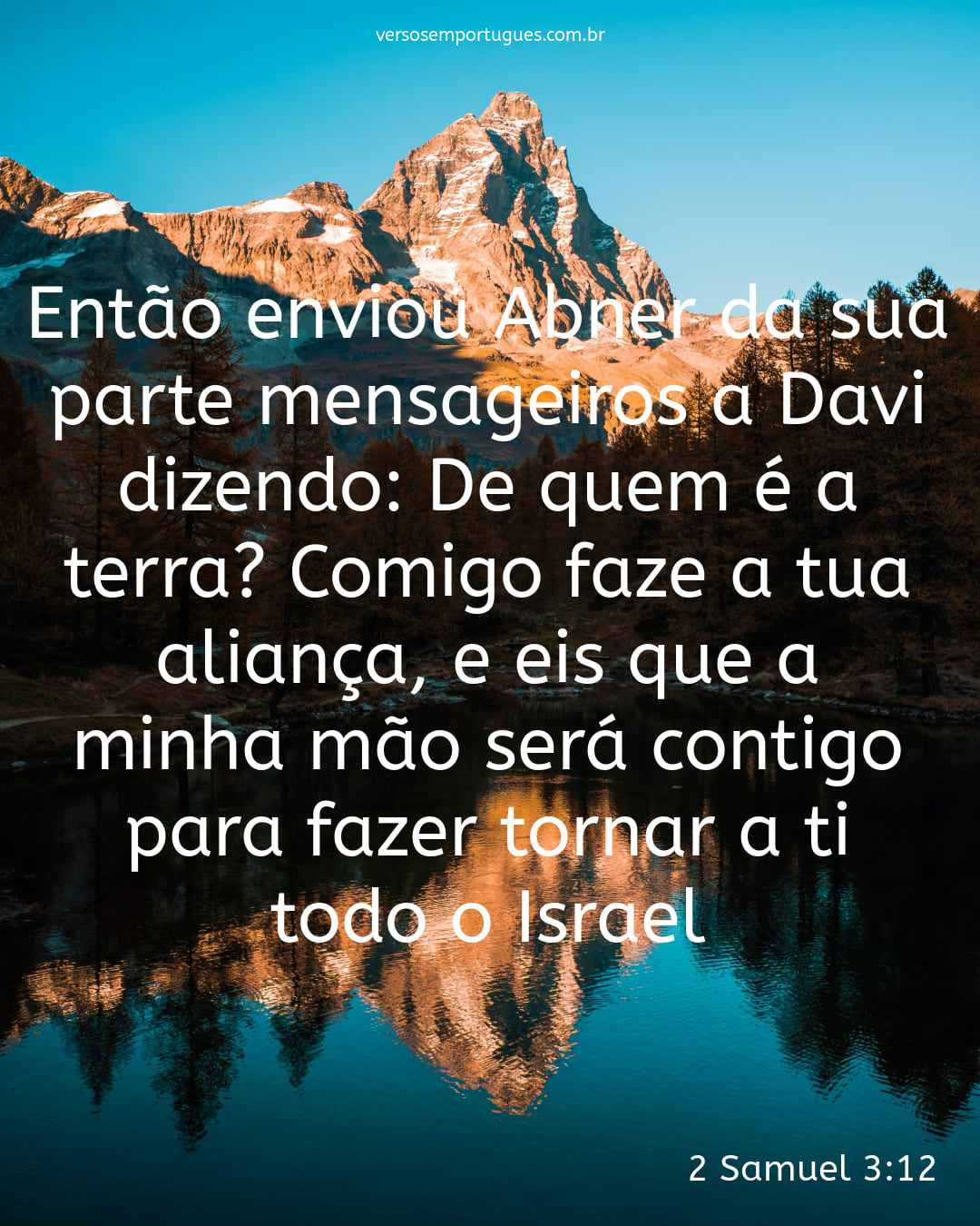 Então enviou Abner da sua parte mensageiros a Davi, dizendo: De quem é a terra? Comigo faze a tua aliança, e eis que a minha mão será contigo, para fazer tornar a ti todo o Israel.