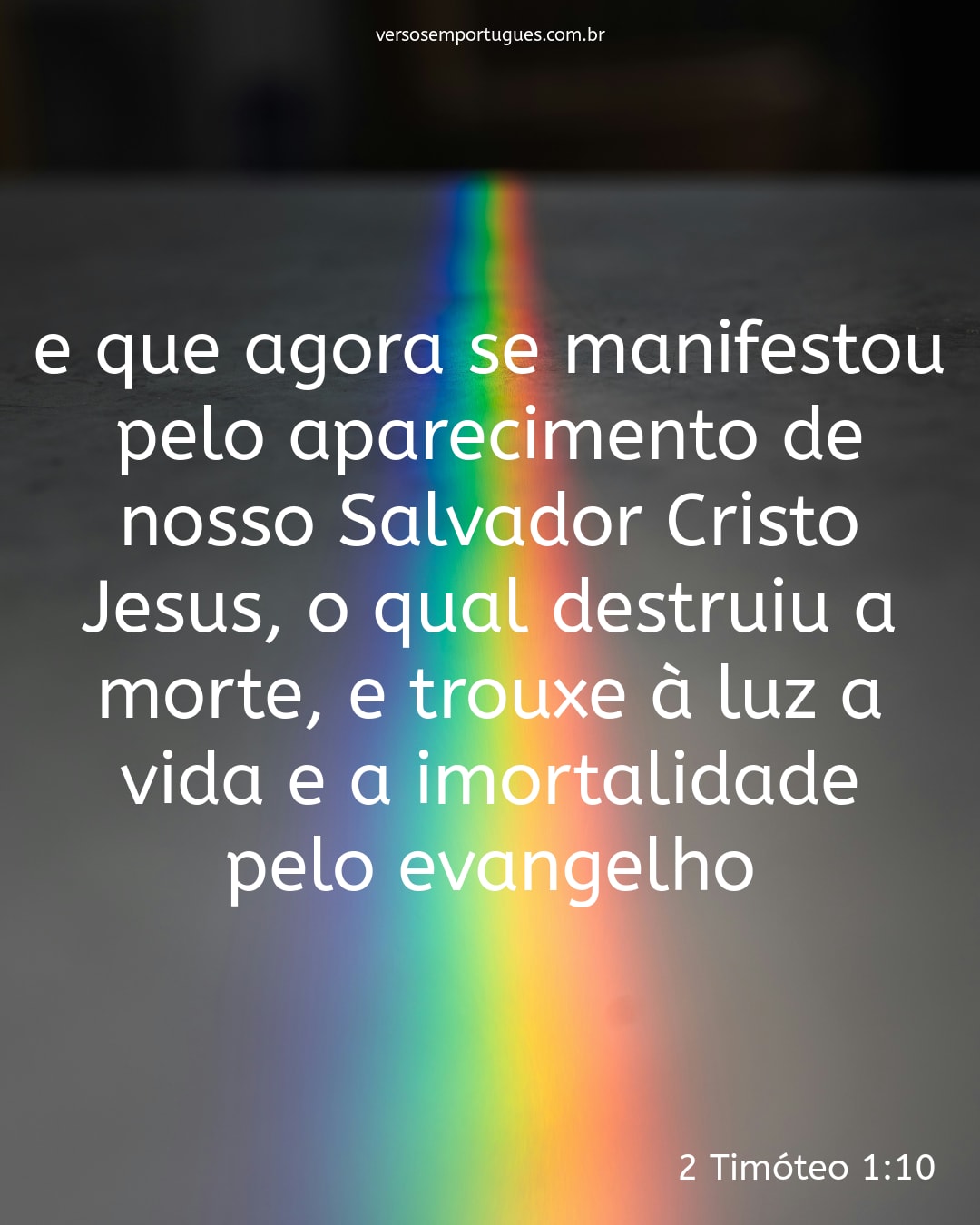e que agora se manifestou pelo aparecimento de nosso Salvador Cristo Jesus, o qual destruiu a morte, e trouxe à luz a vida e a imortalidade pelo evangelho,