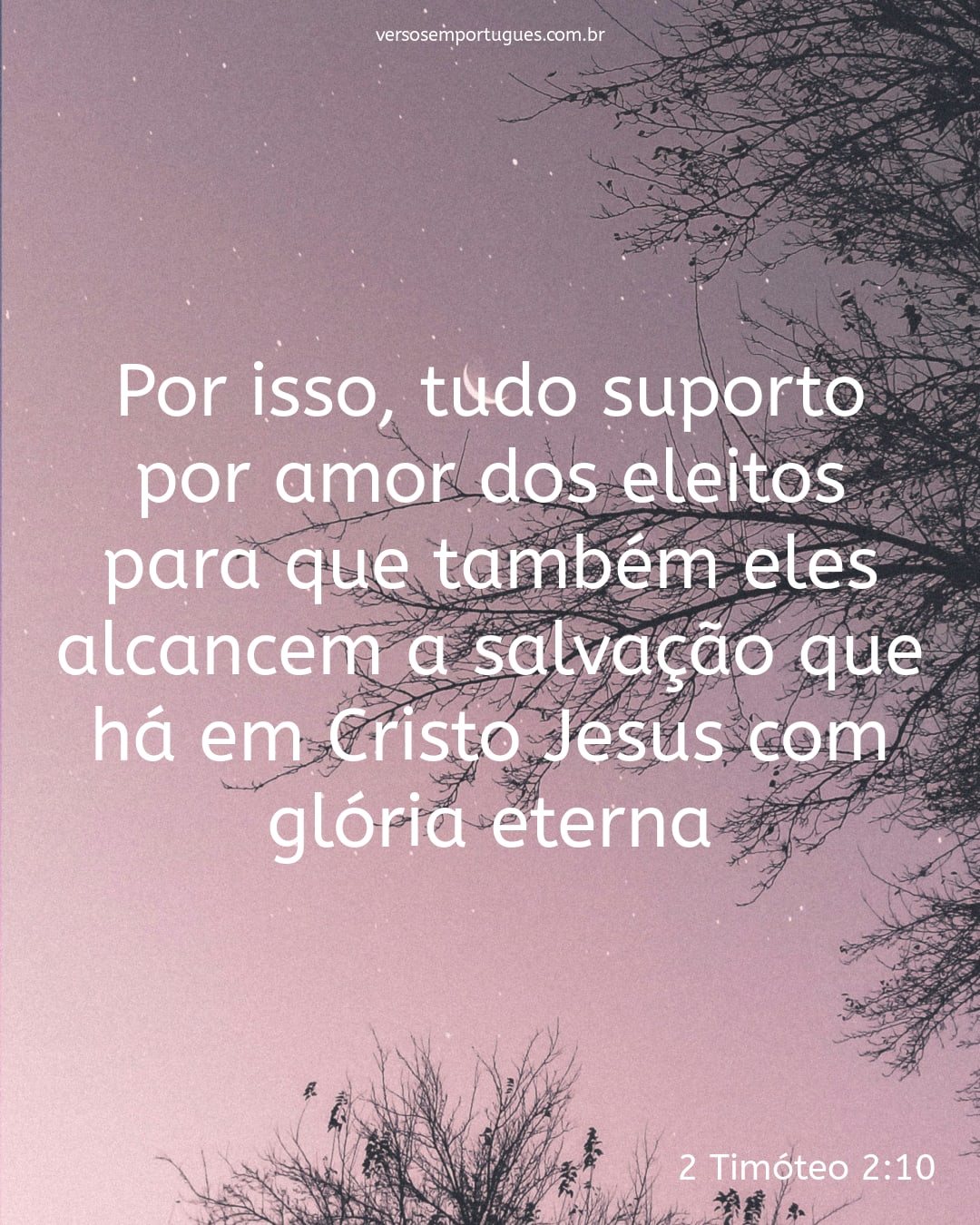 Por isso, tudo suporto por amor dos eleitos, para que também eles alcancem a salvação que há em Cristo Jesus com glória eterna.