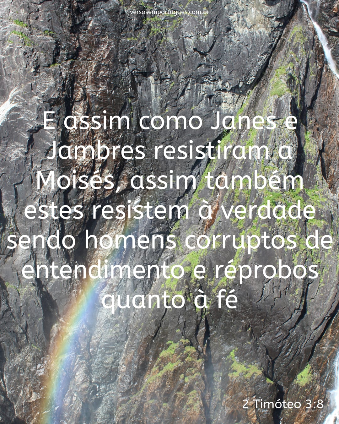 E assim como Janes e Jambres resistiram a Moisés, assim também estes resistem à verdade, sendo homens corruptos de entendimento e réprobos quanto à fé.