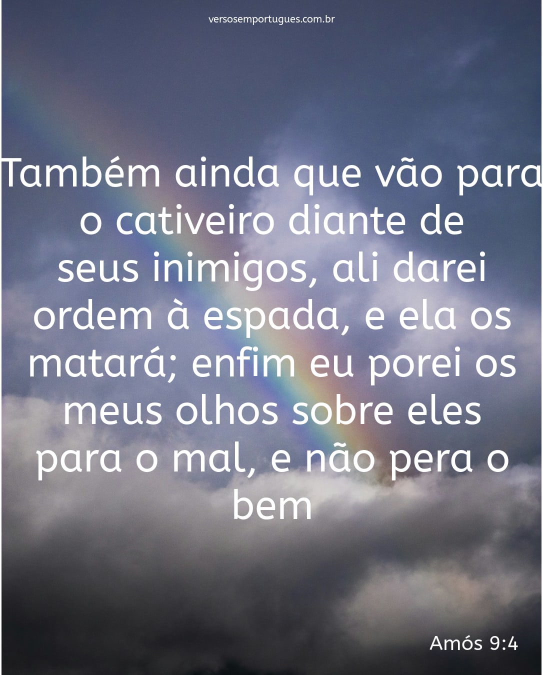 Também ainda que vão para o cativeiro diante de seus inimigos, ali darei ordem à espada, e ela os matará; enfim eu porei os meus olhos sobre eles para o mal, e não pera o bem.
