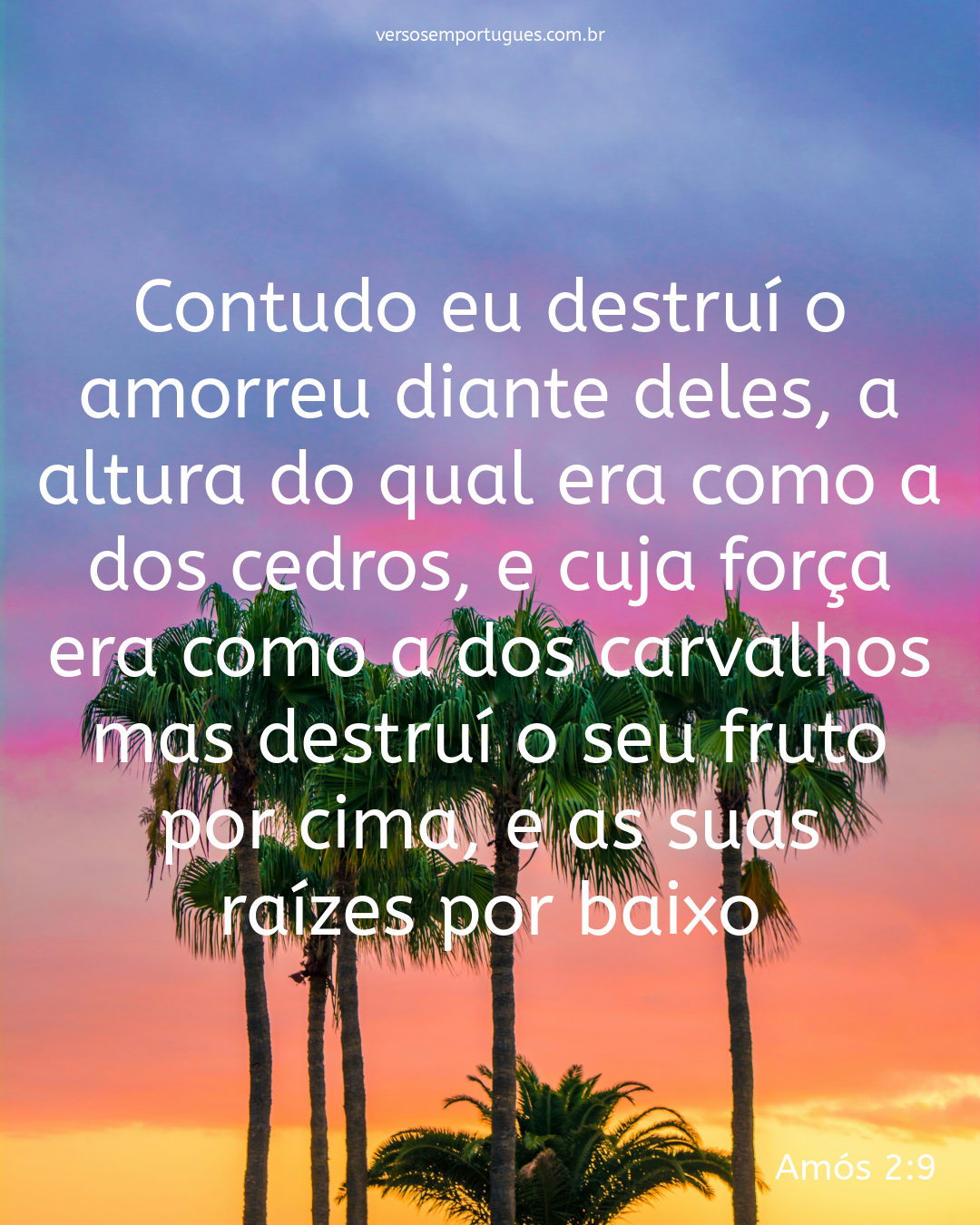 Contudo eu destruí o amorreu diante deles, a altura do qual era como a dos cedros, e cuja força era como a dos carvalhos; mas destruí o seu fruto por cima, e as suas raízes por baixo.