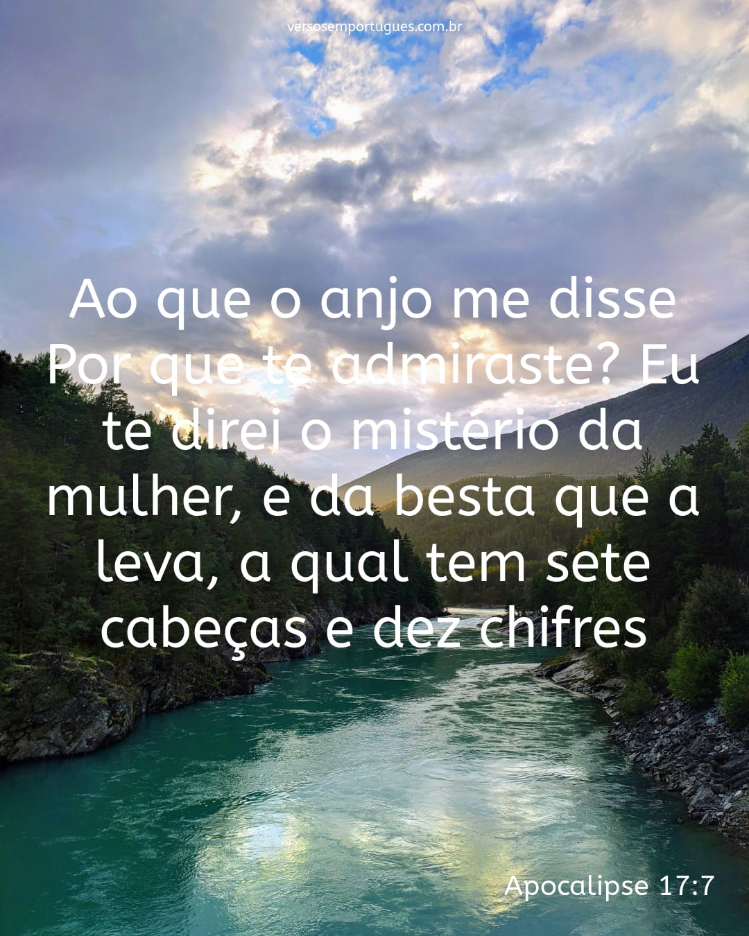 Ao que o anjo me disse: Por que te admiraste? Eu te direi o mistério da mulher, e da besta que a leva, a qual tem sete cabeças e dez chifres.