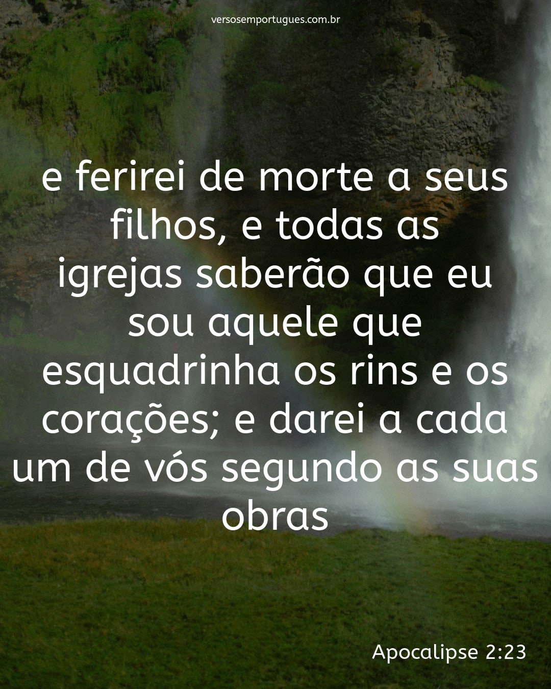 e ferirei de morte a seus filhos, e todas as igrejas saberão que eu sou aquele que esquadrinha os rins e os corações; e darei a cada um de vós segundo as suas obras.