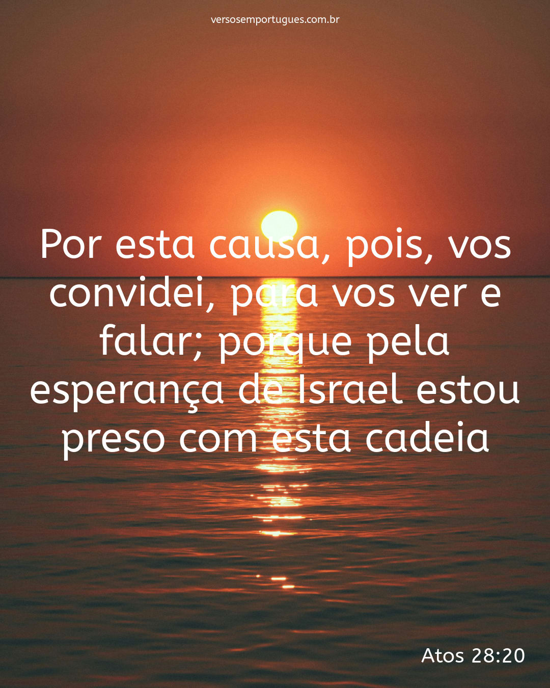 Por esta causa, pois, vos convidei, para vos ver e falar; porque pela esperança de Israel estou preso com esta cadeia.