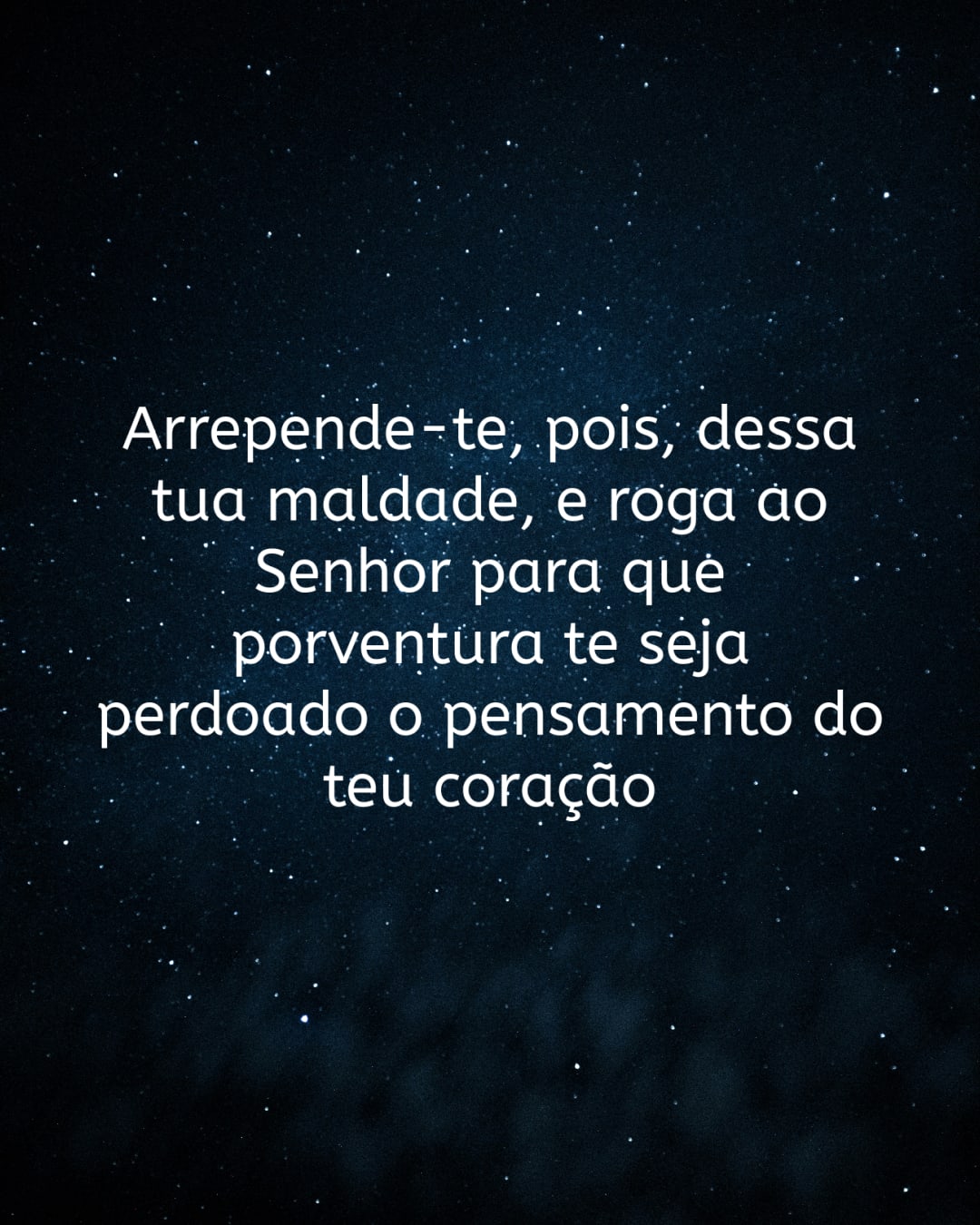 Arrepende-te, pois, dessa tua maldade, e roga ao Senhor para que porventura te seja perdoado o pensamento do teu coração;