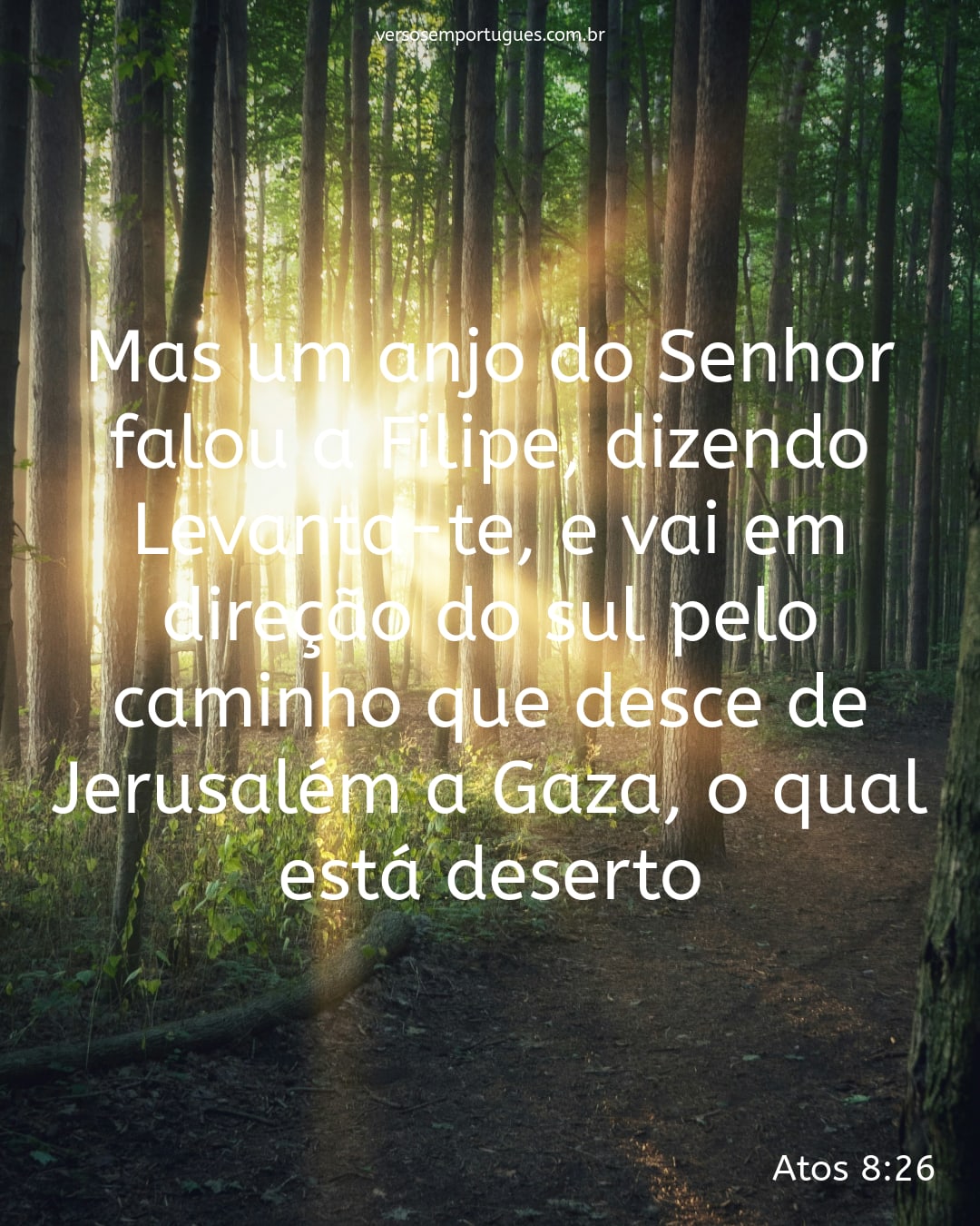 Mas um anjo do Senhor falou a Filipe, dizendo: Levanta-te, e vai em direção do sul pelo caminho que desce de Jerusalém a Gaza, o qual está deserto.