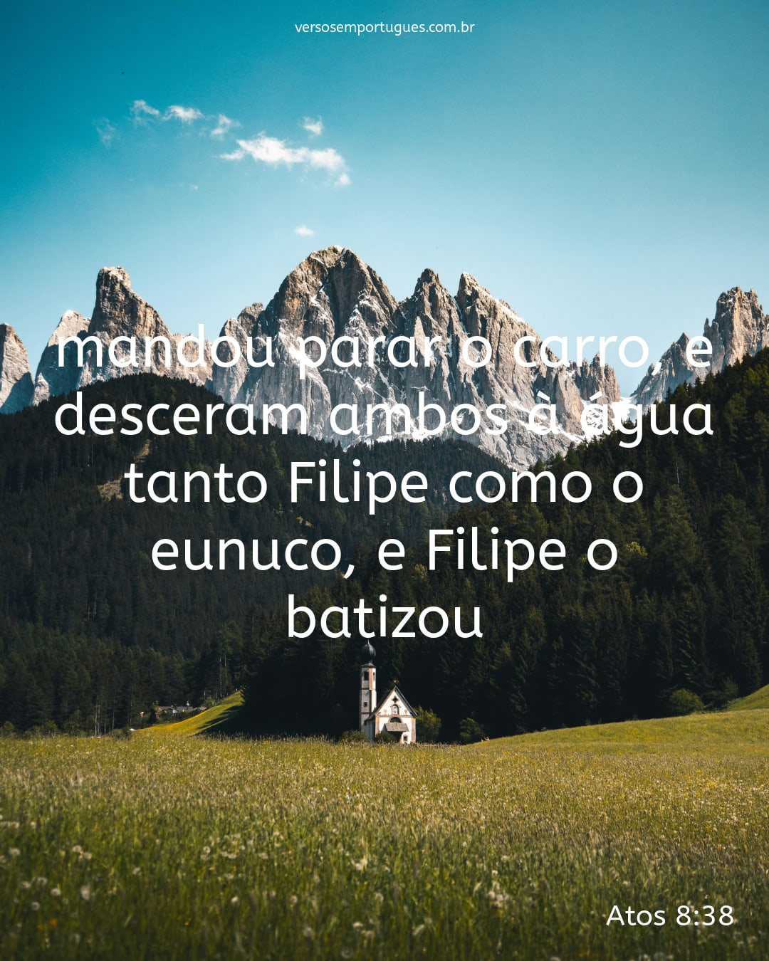 mandou parar o carro, e desceram ambos à água, tanto Filipe como o eunuco, e Filipe o batizou.