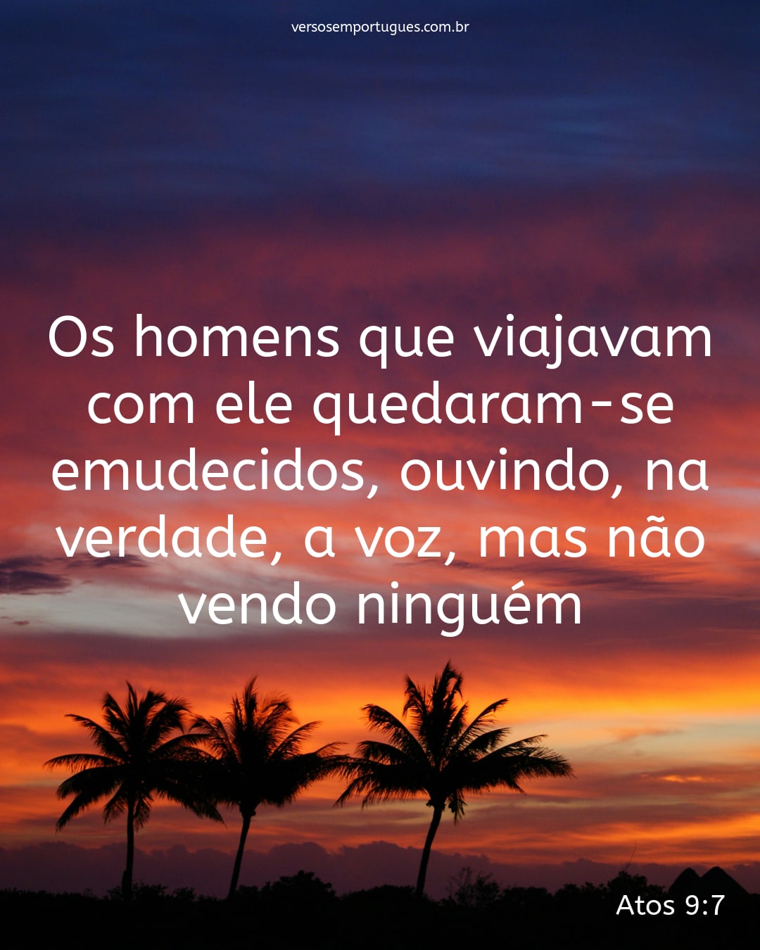Os homens que viajavam com ele quedaram-se emudecidos, ouvindo, na verdade, a voz, mas não vendo ninguém.